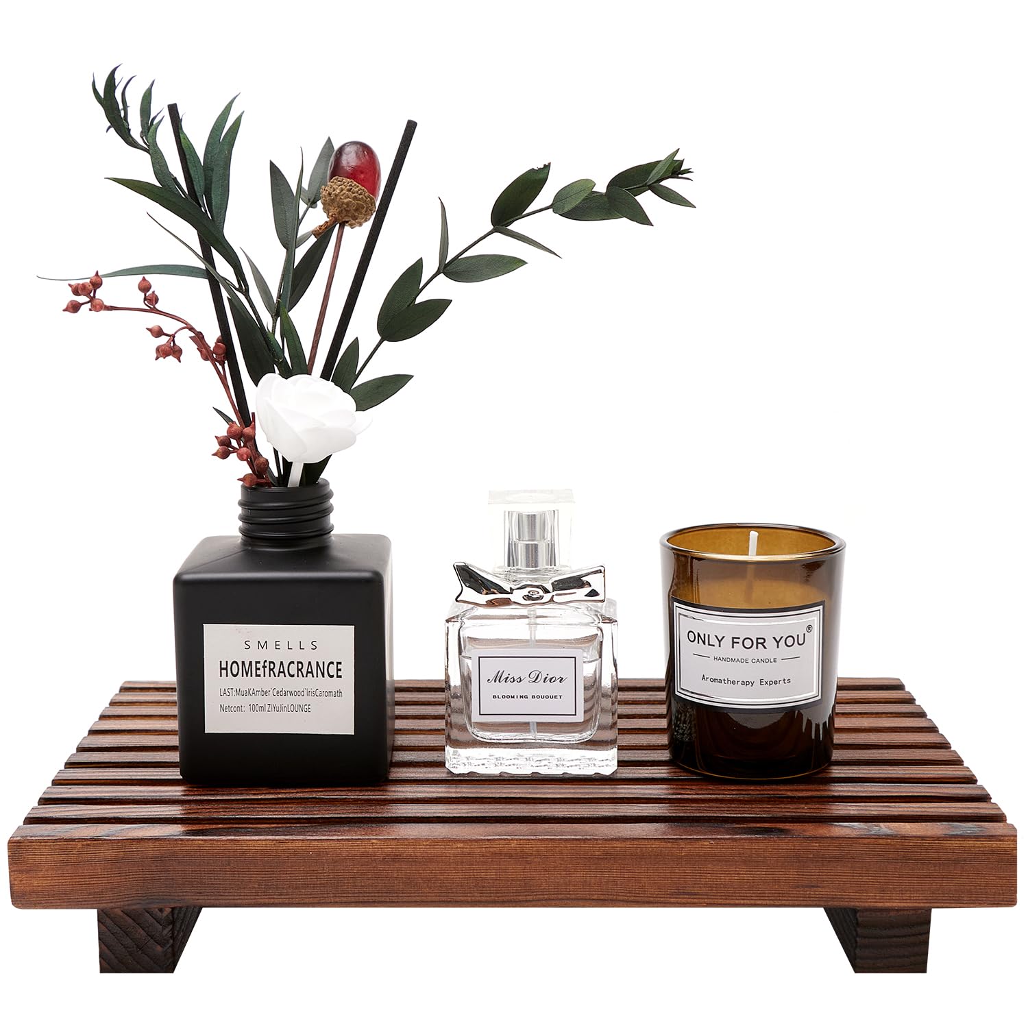 - MULTIFUNCTION WOOD RISER: The wooden tray decor will match well with the items you put on it, such as skincare, dispenser, plants, candles, mouthwash, perfumes, flower pot, jewelry, etc; This wood soap dispenser tray is very beautiful and keeps things off the counter. Great as bathroom decor, kitchen counter decor, sink tray, vanity decor, soap dispenser tray.