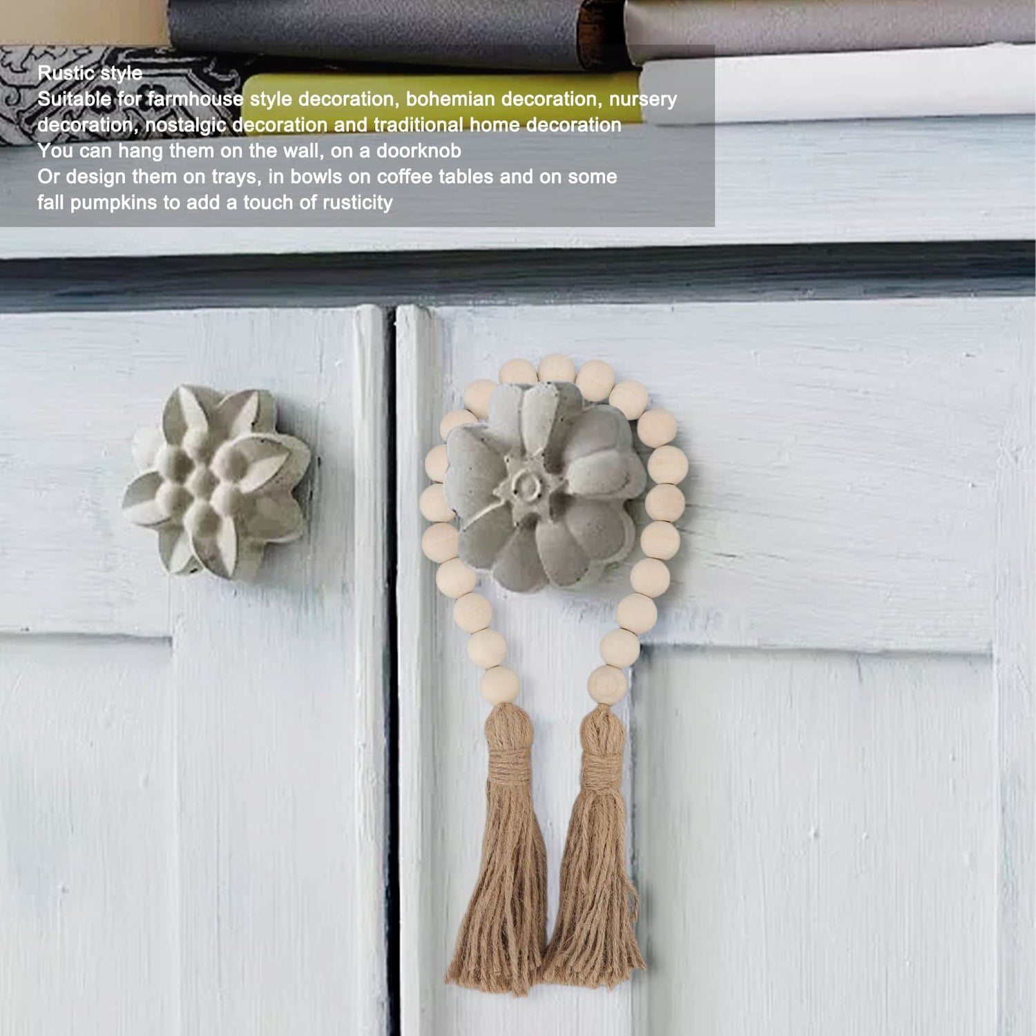 Farmhouse Beads 24in Wood Bead Garland with Tassels Rustic Country Decor Prayer Wall Hanging Bead Decoration for Gifts Ornamen