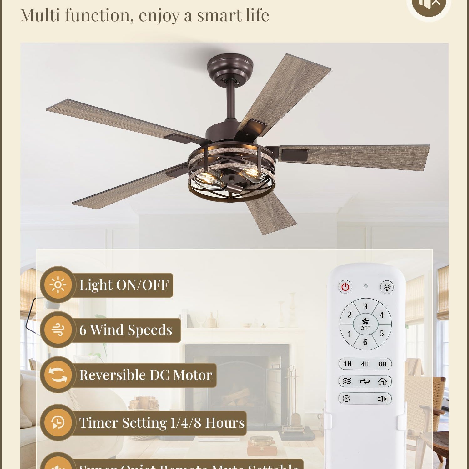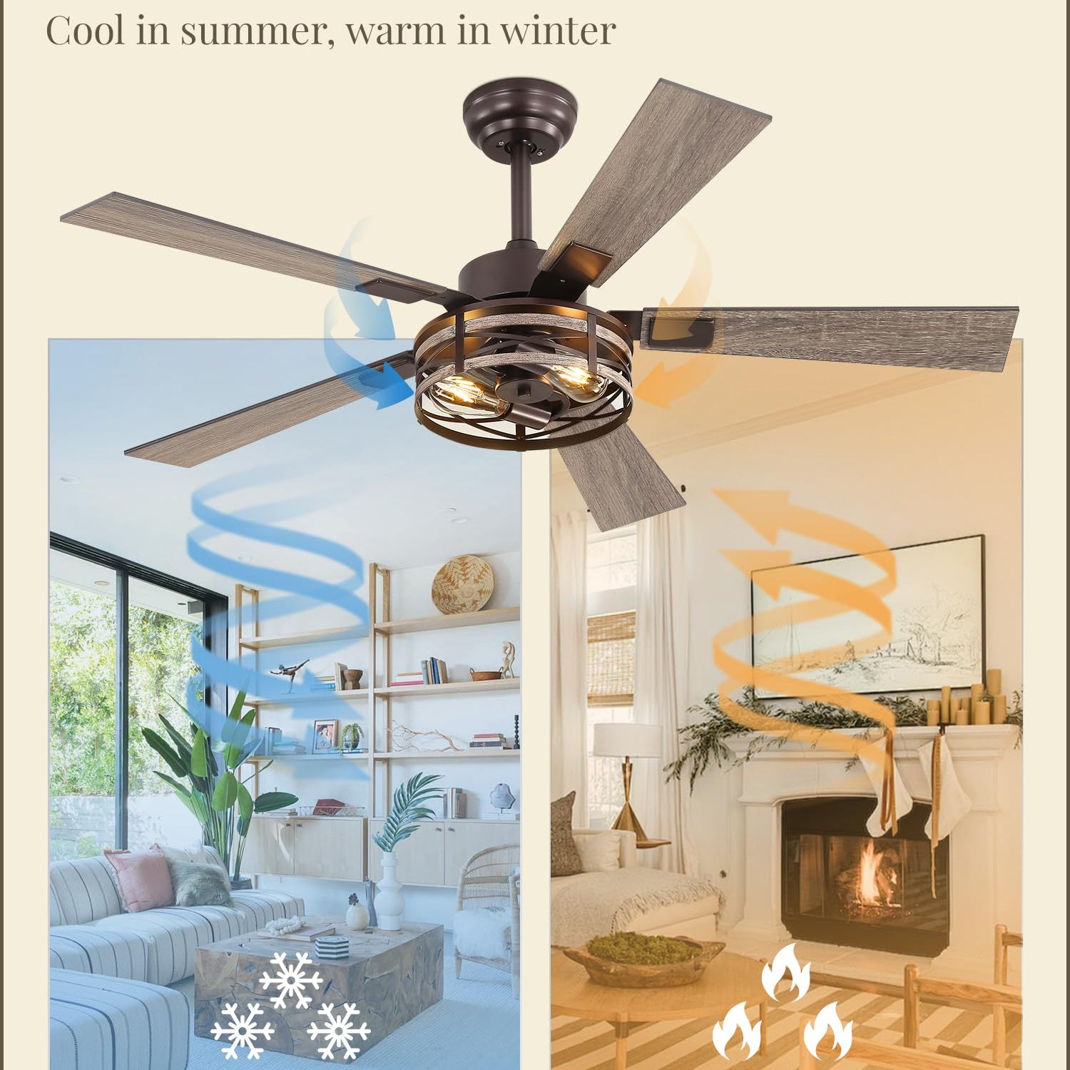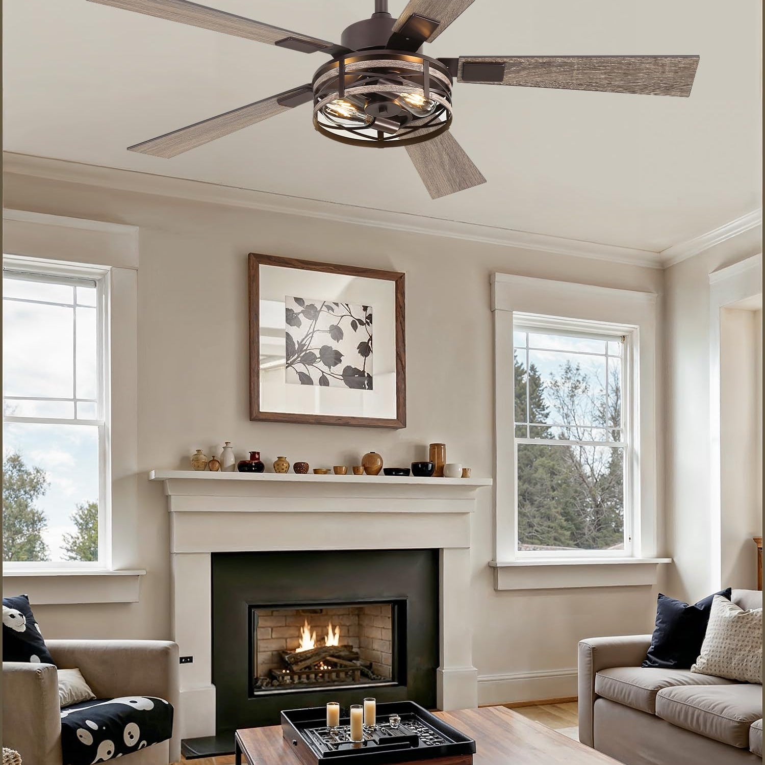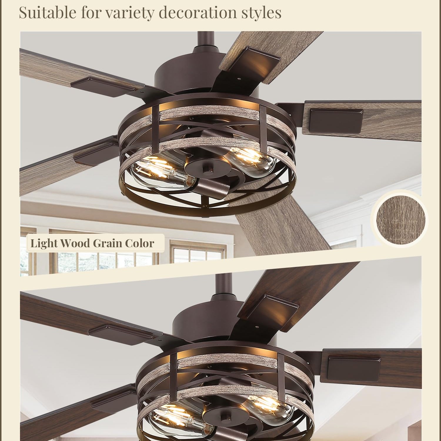 - Elegantly Designed Ceiling Fan: Embrace the charm of vintage farmhouse style with ceiling fan with light. Featuring innovative dual-color walnut blades and a decorative caged structure, you can effortlessly customize the look to complement your home decor. This industrial ceiling fan includes an E26 bulb base, compatible with most bulbs on the market, allowing you to choose the perfect lighting (bulbs not included). Ideal for multiple settings, the ceiling fan with remote enhances the ambiance of your living room, bedroom, kitchen, and more