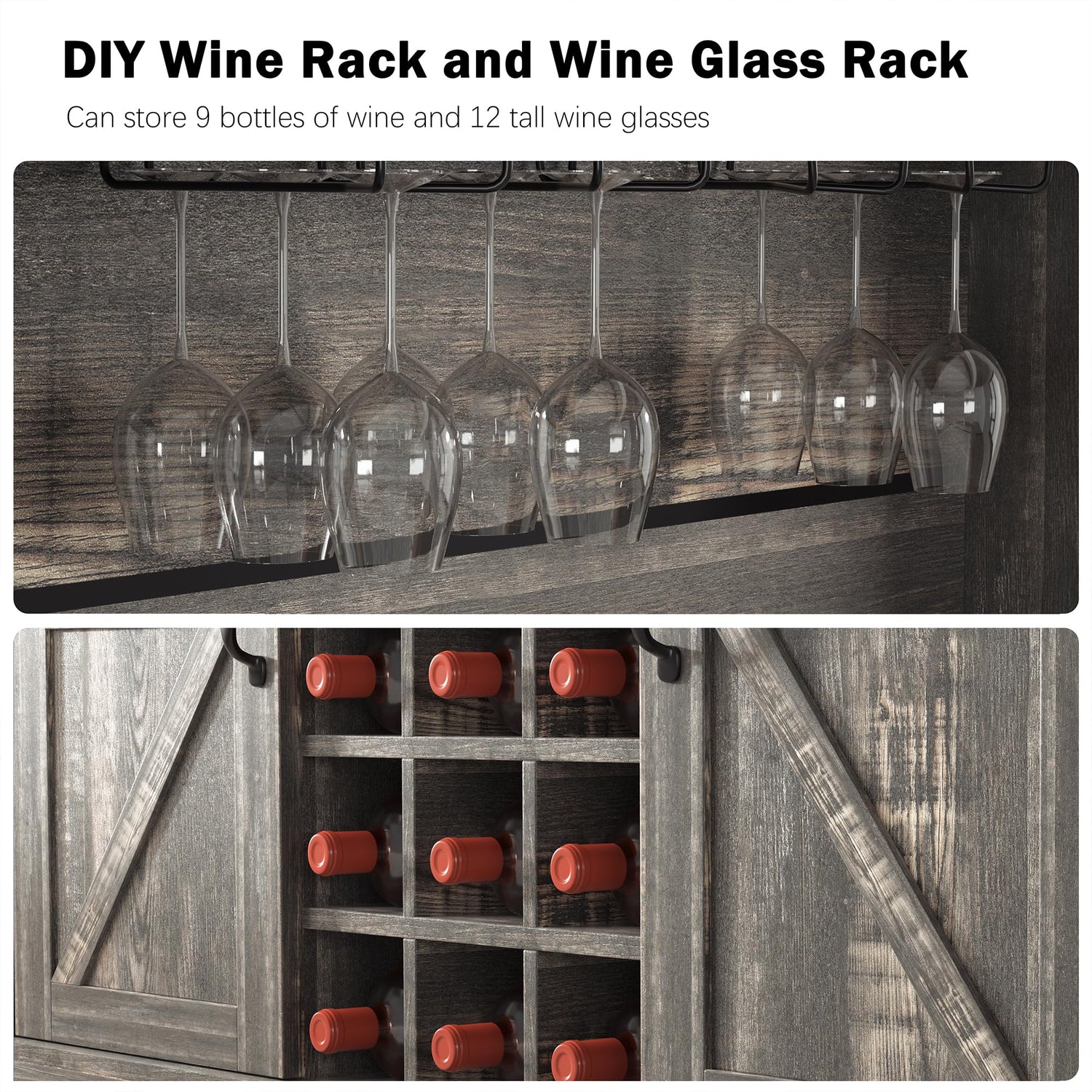 - 【Farmhouse Elegance and Safety Design】We proudly present our stunning farmhouse kitchen cabinet, meticulously crafted from engineered wood to ensure long-lasting durability. Breaking away from tradition, we introduce an elegant sliding door design above the kitchen wine cabinet. This innovative choice helps to avoid potential collisions and enhance the safety.