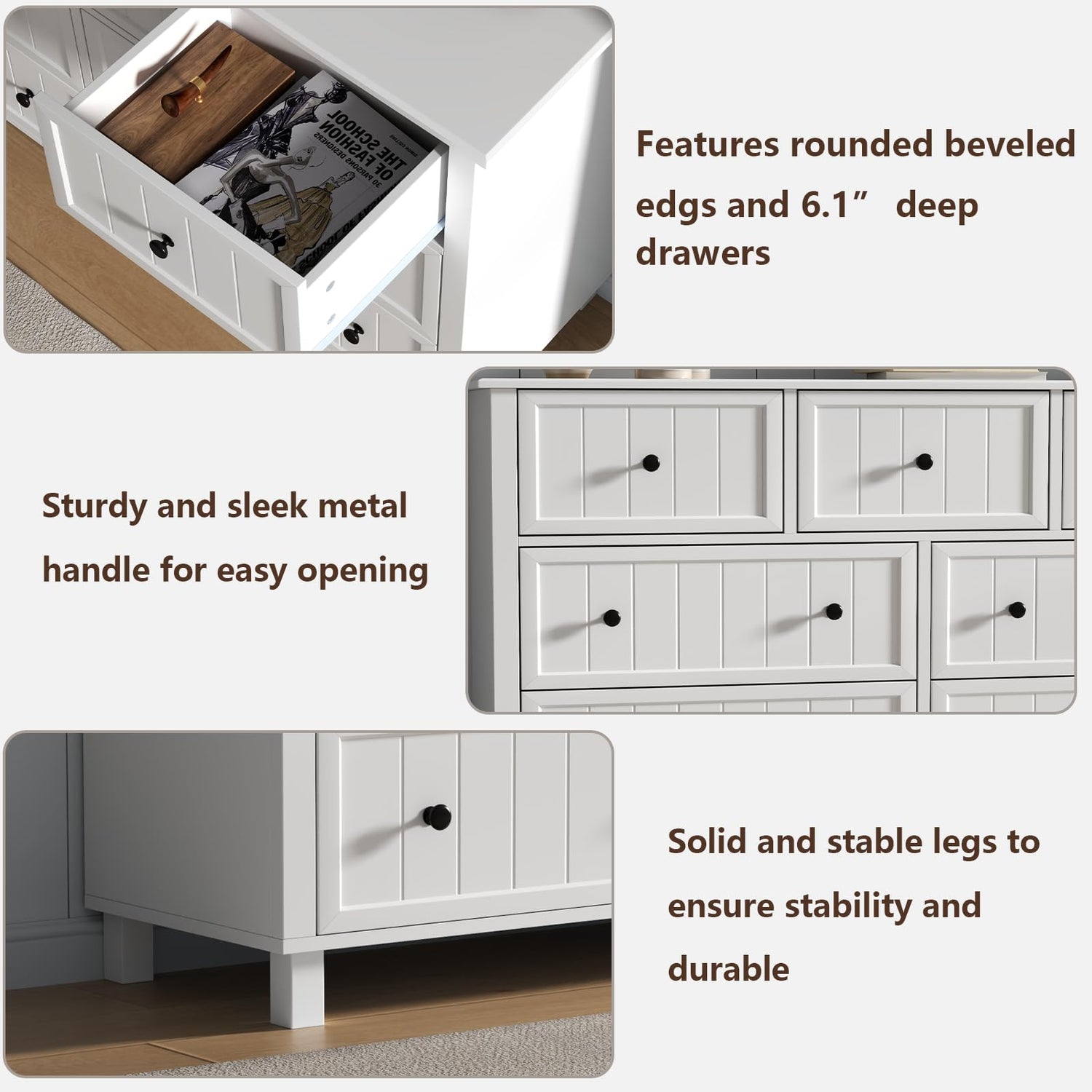 - 【Multifunction Drawer Organizer】The farmhouse dresser for bedroom is multi-functional and versatile, and the space-saving design does not compromise on storage capacity, making it an ideal solution for maximizing vertical space. This 7 drawer dresser can enhance organization and style in any room and fit well in any room of the house: as a TV stand in the living room, as a console cabinet in the entryway and hallway, or even as a storage cabinet in the dining room and kitchen.