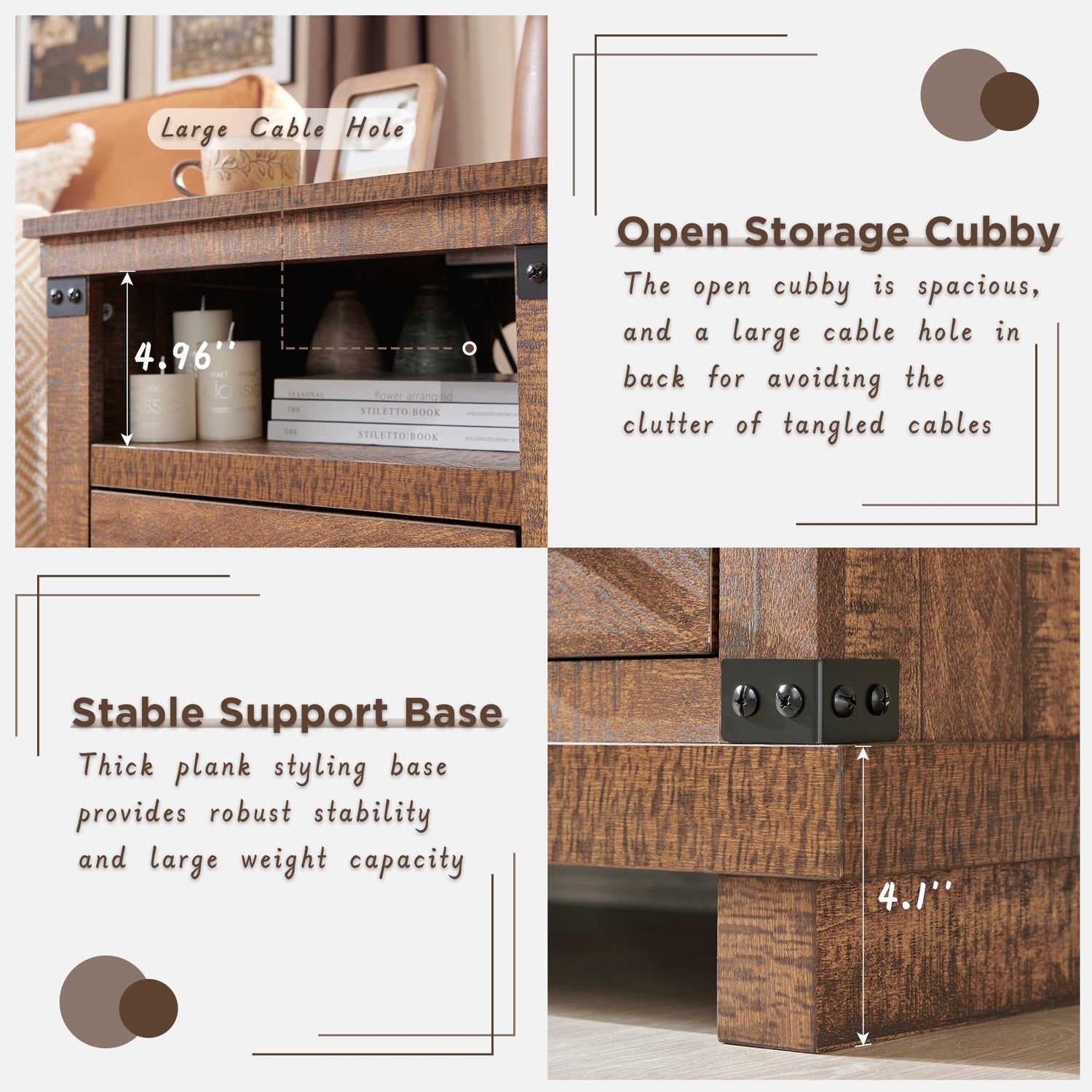 - Match All Your Bed/Sofa Side Need: Farmhouse Nightstand with charging station, spacious tabletop built-in 2 AC outlets & 2 USB ports, providing convenience for charging your tablets, cellphones devices. 2 smooth-gliding drawers and open cubby offer ample storage for your essentials, keep bedside odds and ends within easy reach. The back of open cubby comes with a 2.3“ cutout for simplify cord management and help you stay organized.