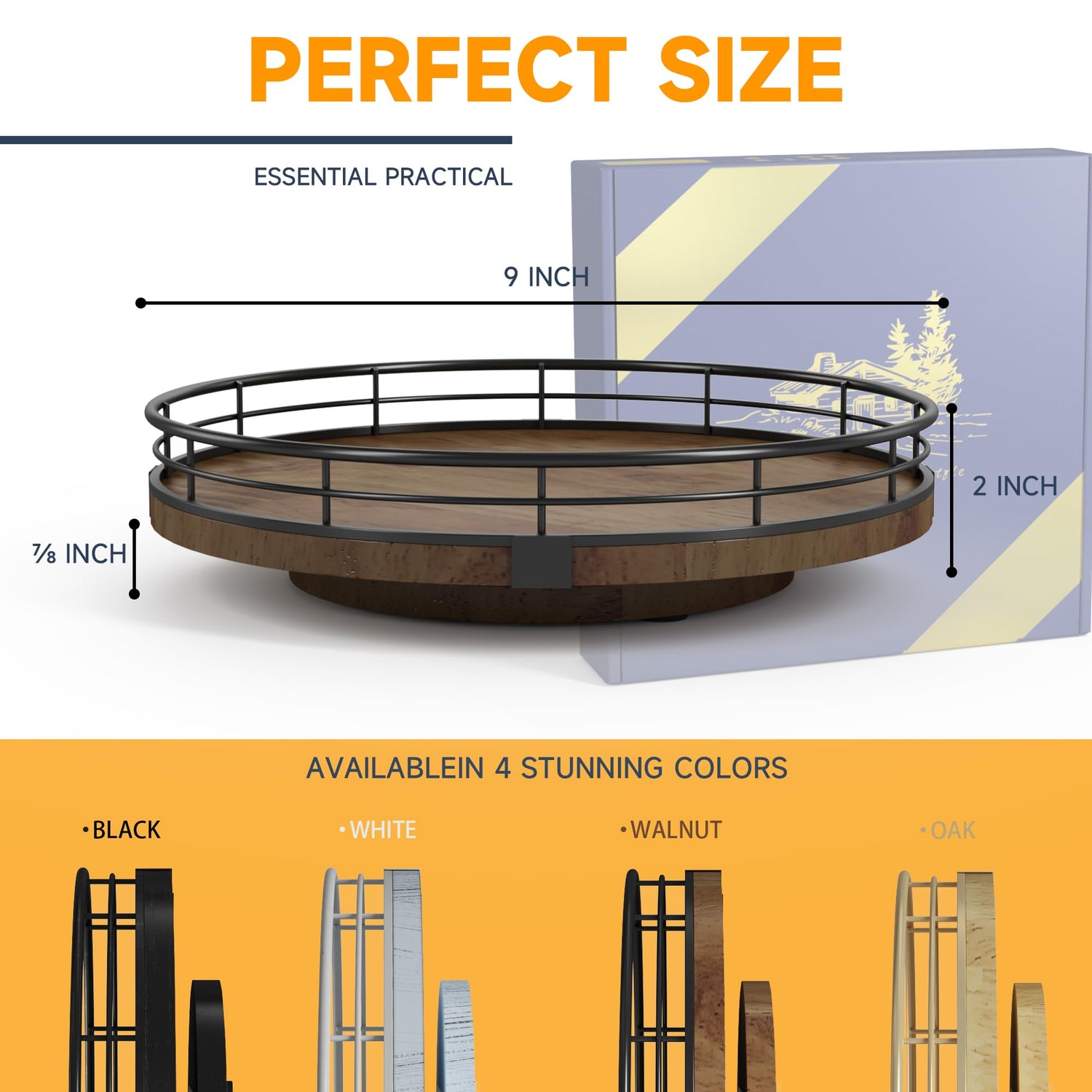 Farmhouse Oak 9" Lazy Susan Turntable Organizer for Cabinet, Round Wooden Lazy Susan Organization and Storage for Dining Table, Pantry, Kitchen, Countertop, Cupboard,Home Decor, Walnut Wood