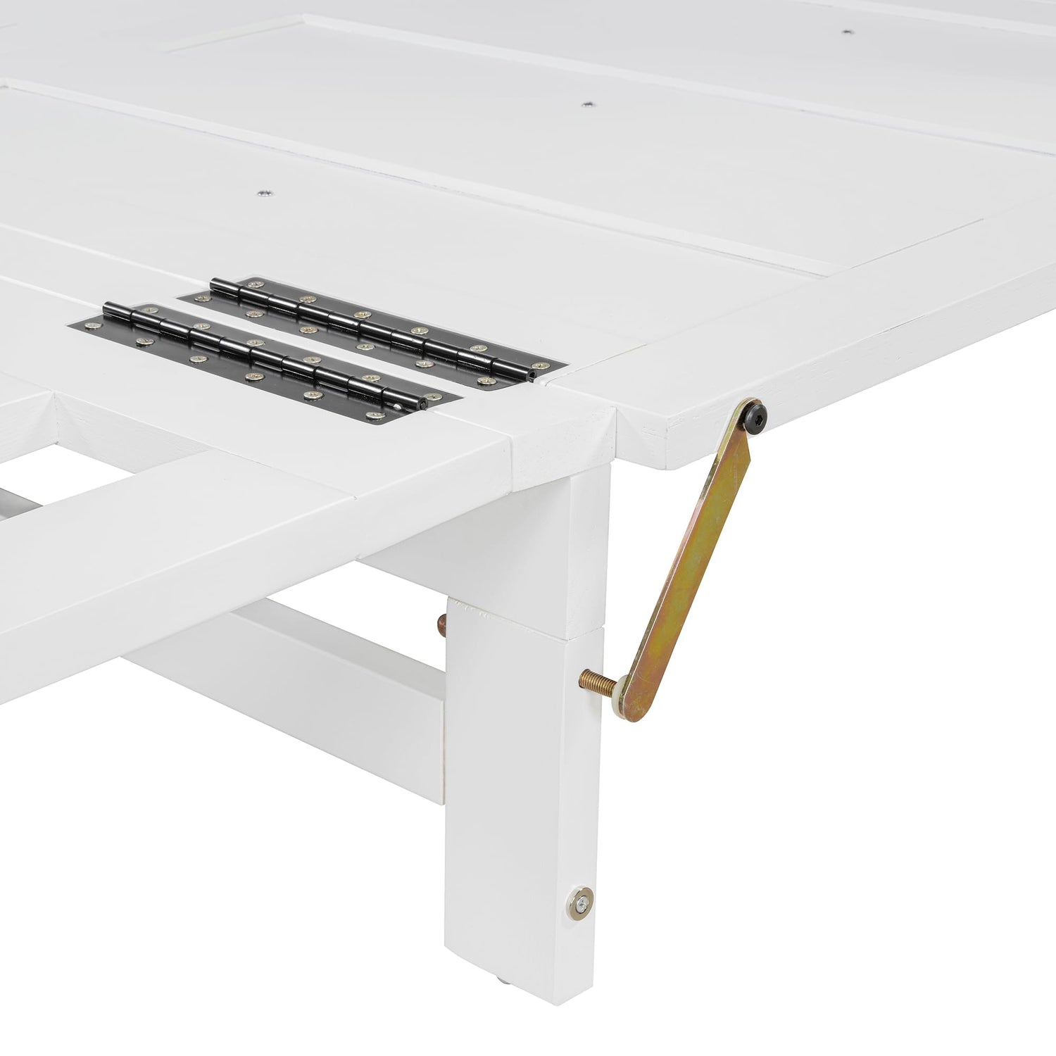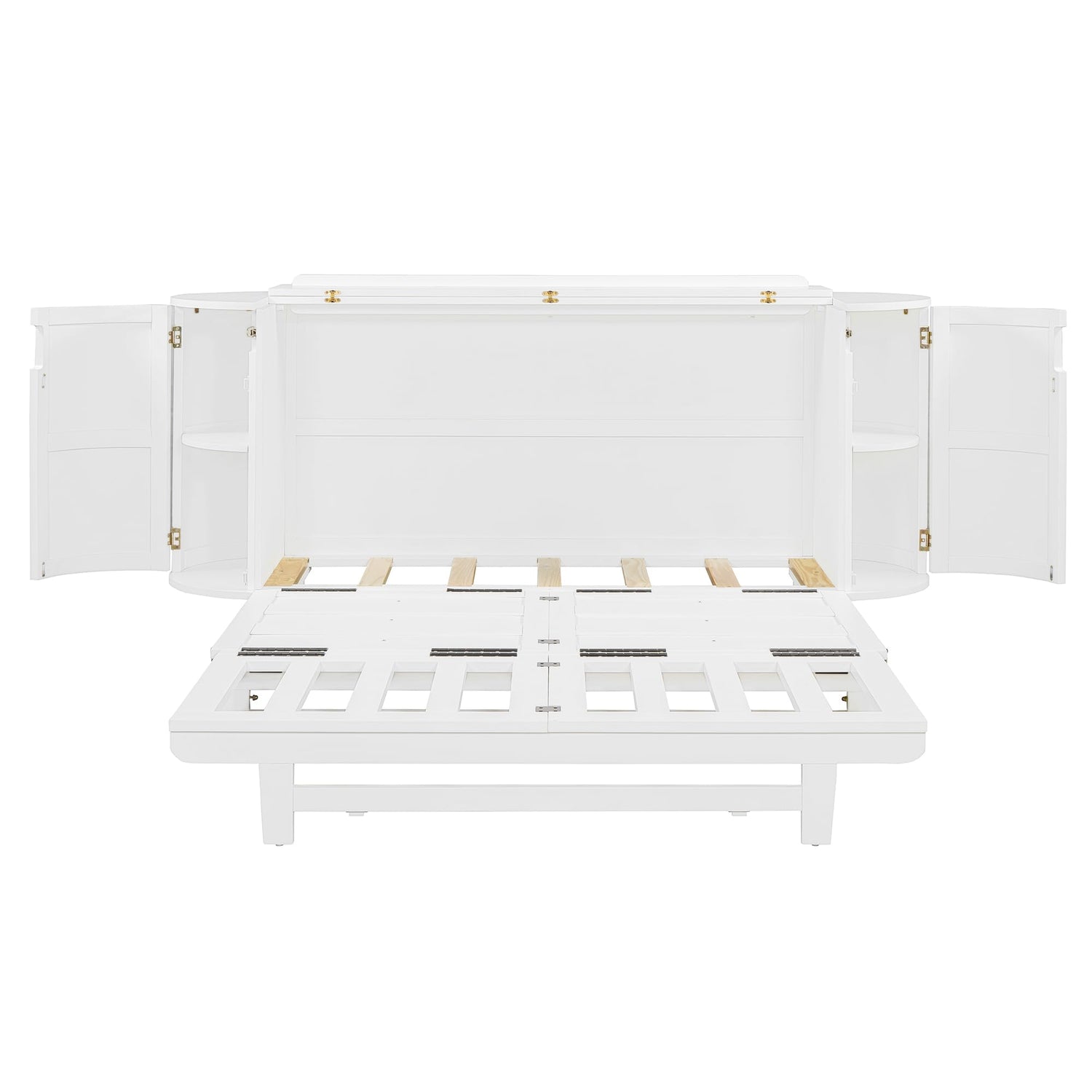 Farmhouse Queen Size Murphy Bed with Both Sides Hidden Storage, Solid Wood Folding Platform Bed Chest Cabinet Bed for Home Office Guest Room Small Room, Modern Woven Design (White-3.4, Queen)