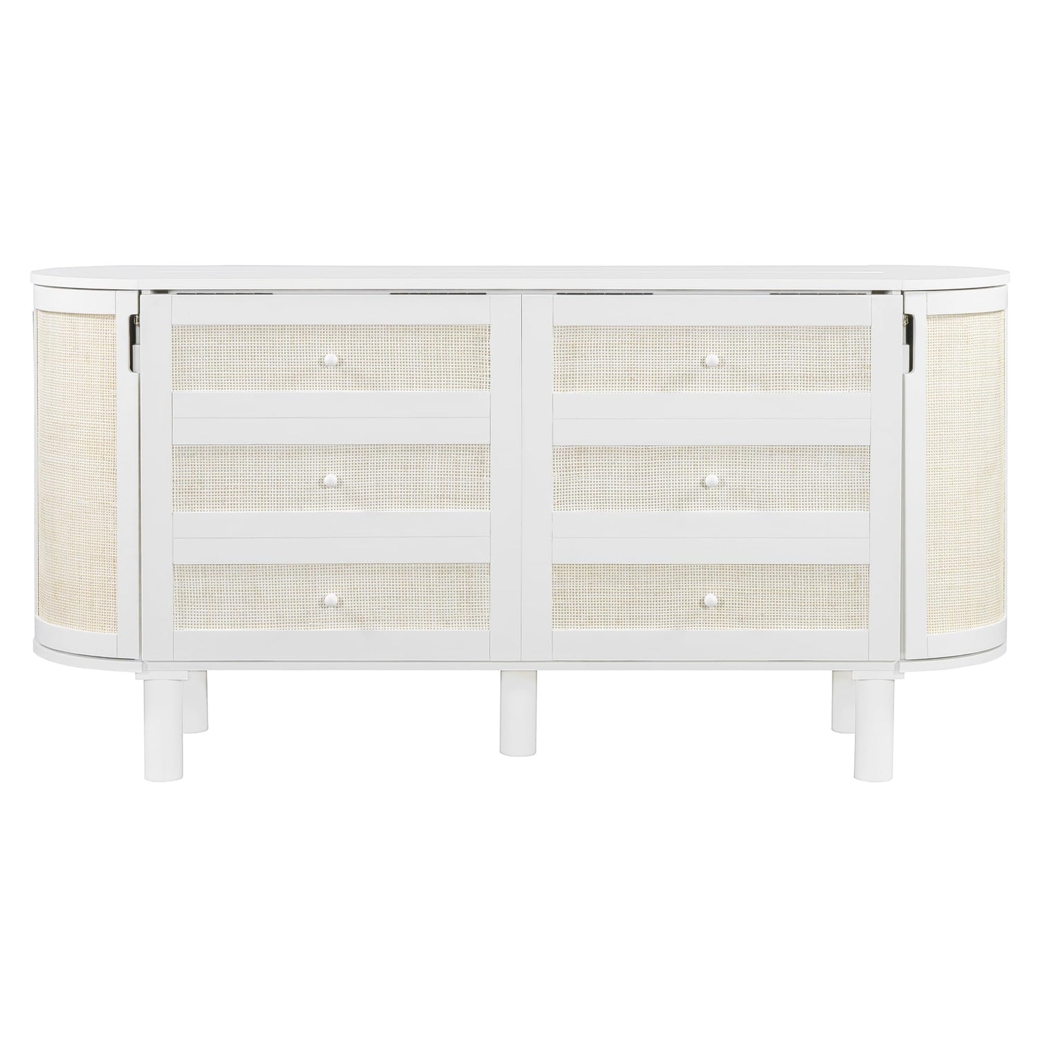 - 【Sleek Drawer-Front Design】Camouflaged drawers with handwoven rattan accents add rustic-modern charm to any decor.
