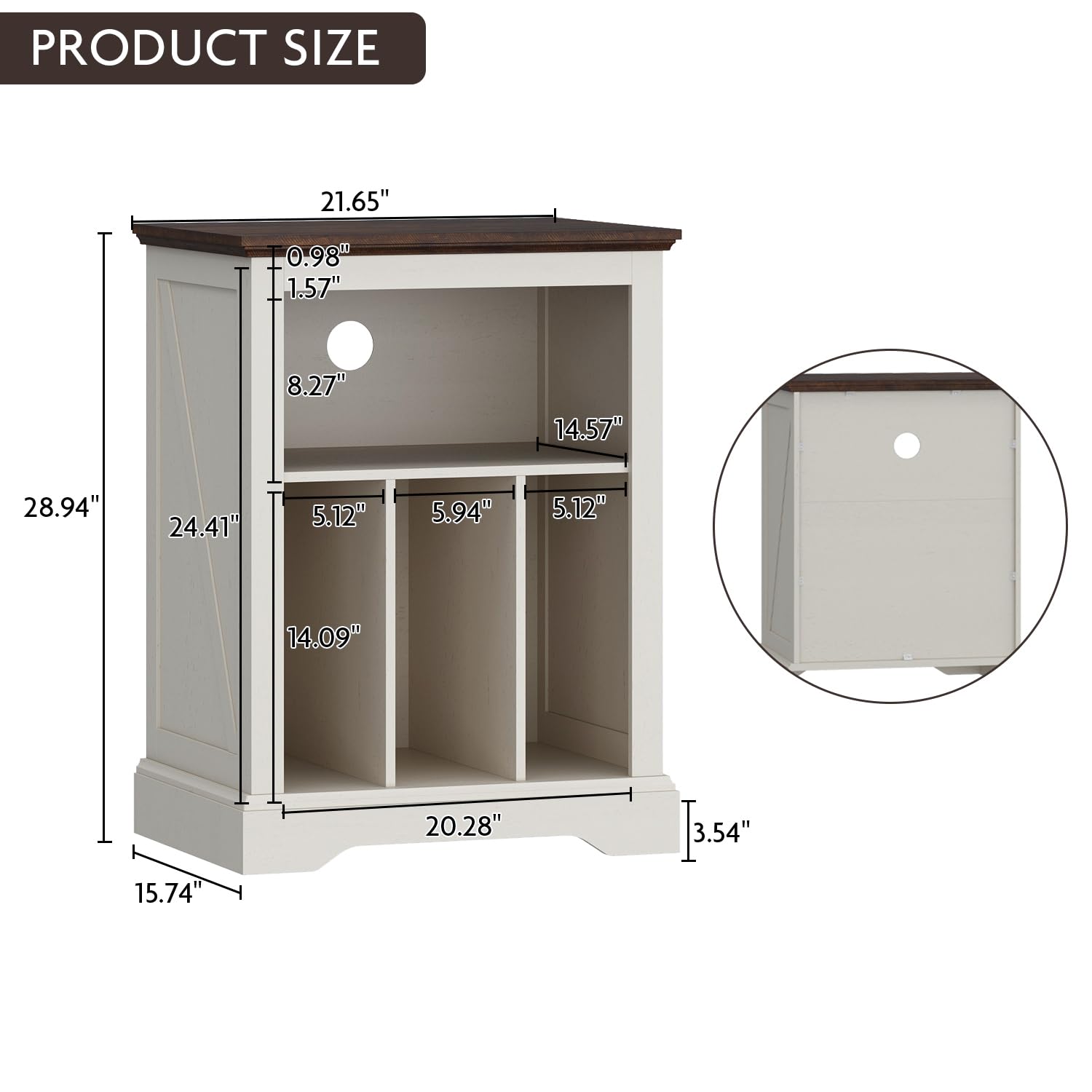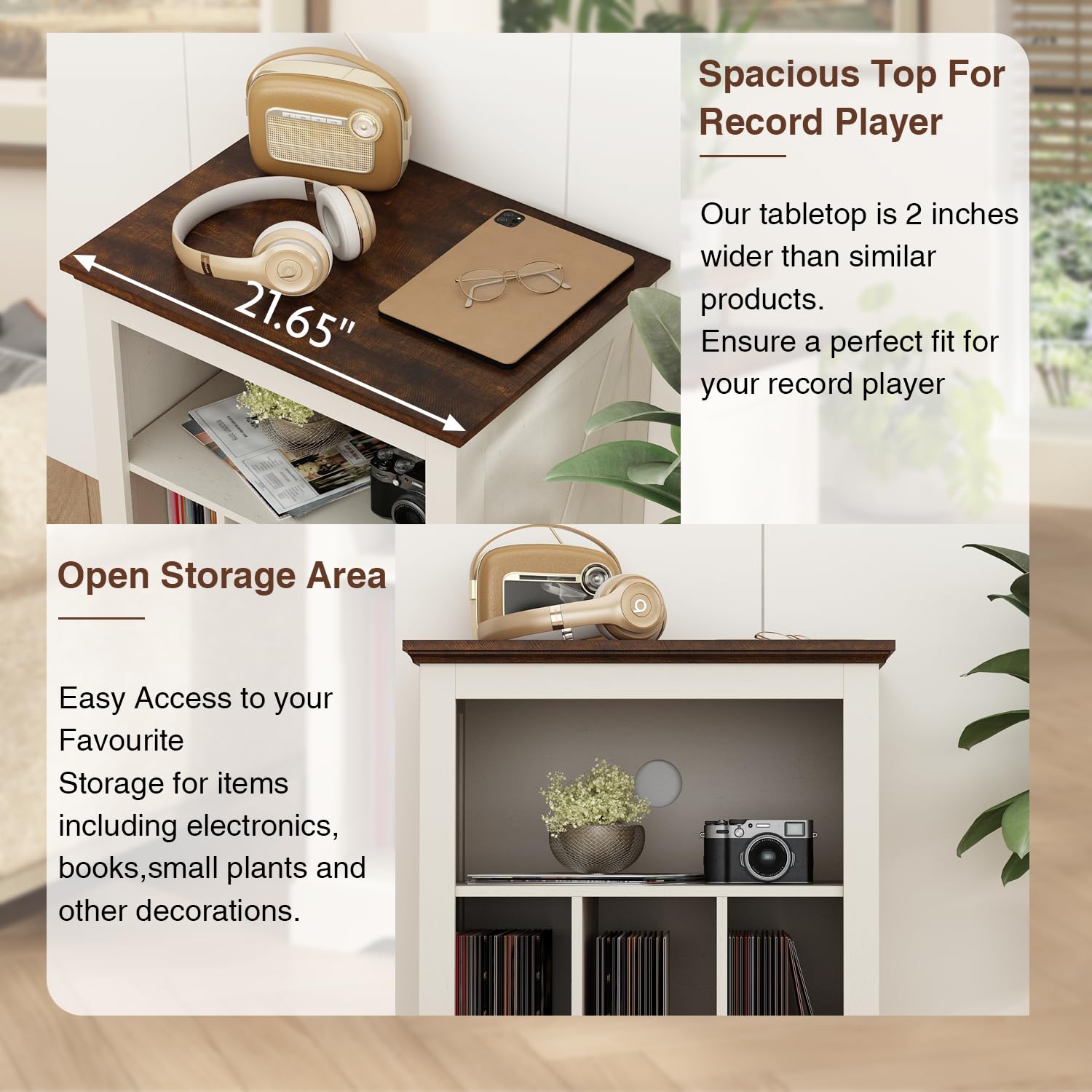 Farmhouse Record Player Stand, 3 Tier End Table, Turntable Stand with Vinyl Record Storage Holds Up to 160 Albums,Wood Record Holder Cabinet Dispaly Shelf for Living Room,Bedroom,Office,Antique White