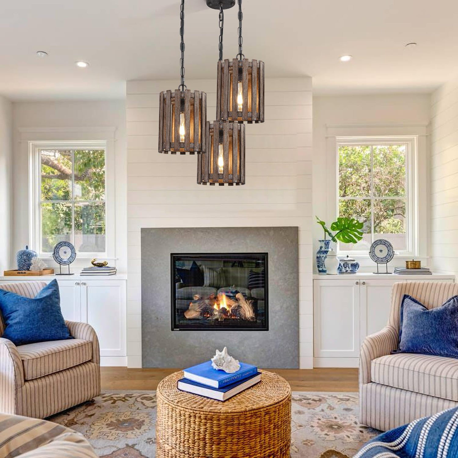 - RETRO INDUSTRIAL DESIGN --- Wood frames with a rustic farmhouse style make the WOCHOS round wooden chandelier perfect for kitchen islands, dining rooms, living rooms, foyers, corridors, basements, bars, restaurants, bedrooms, coffee shops, and club decorations.