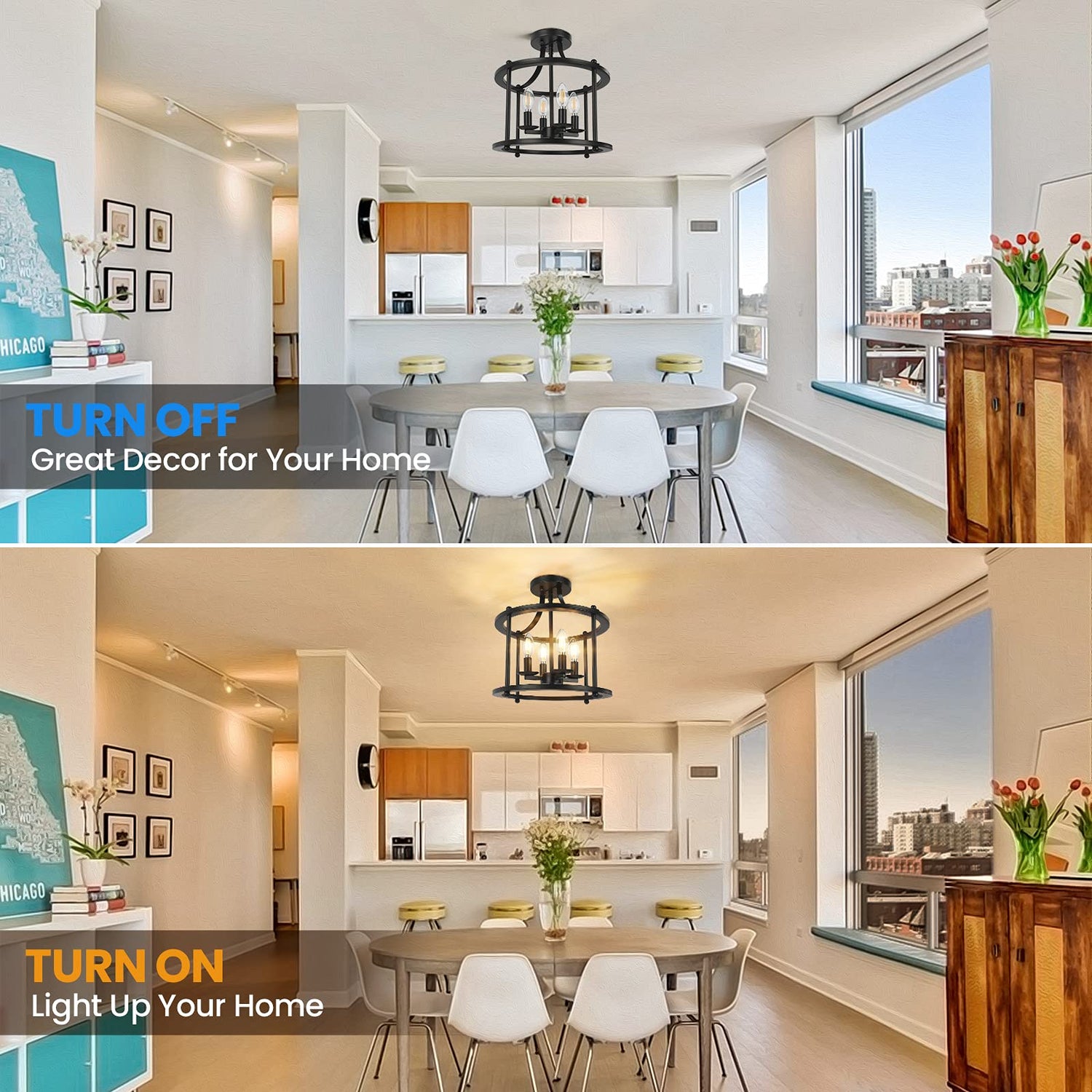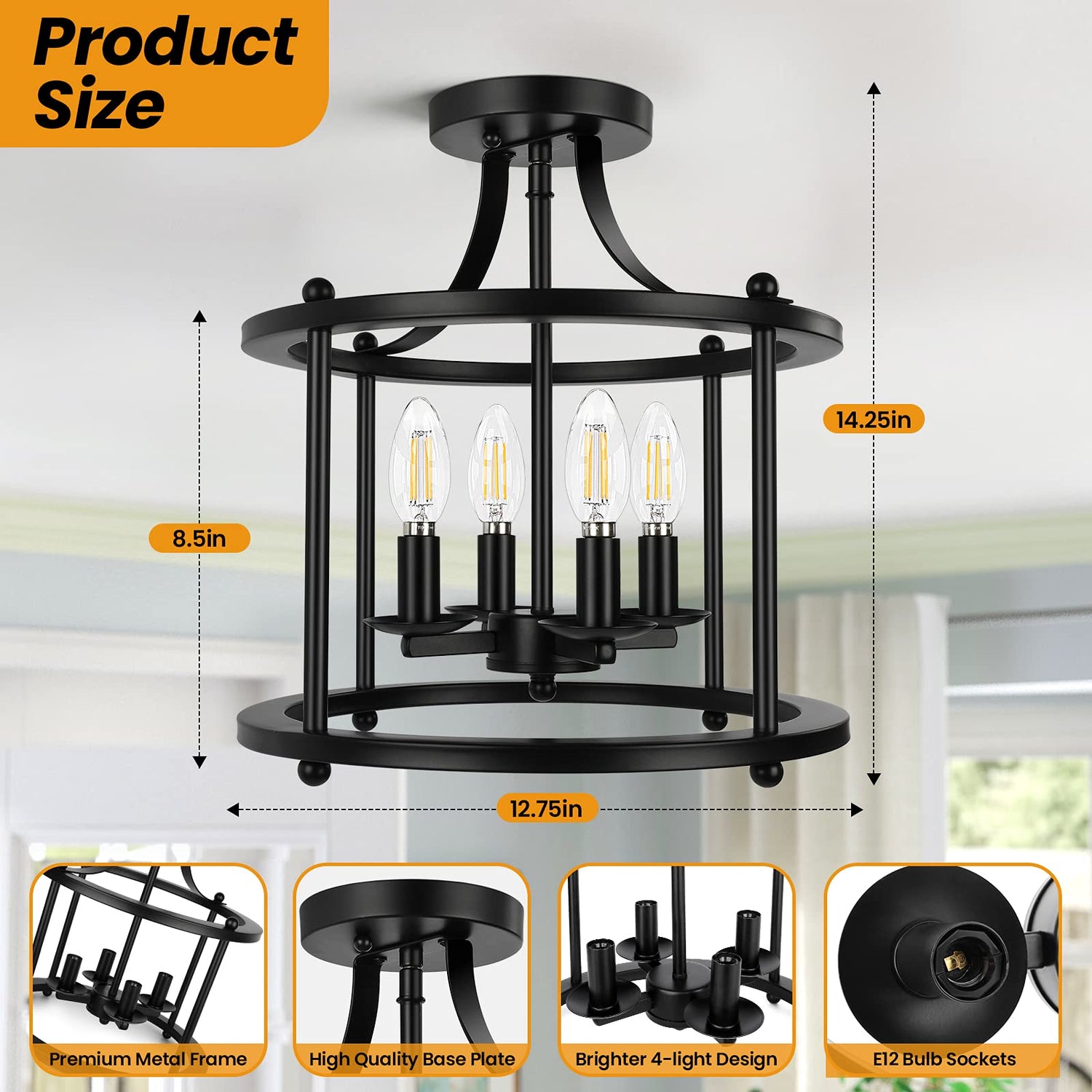 - Brilliant 4-Light & Open Caged Design, Brighter Your Place: Adopting open caged design, this ceiling lamp offers chic sensibility and protects the bulbs while not affecting the illumination. Combined with 4-light construction, this 4-light ceiling light will give off much more brightness to your place than those lighting fixtures with less lights or with cover or shade, brighter you place! Great for reading, watching TV, playing games or sharing happy times with family and friends and so on.