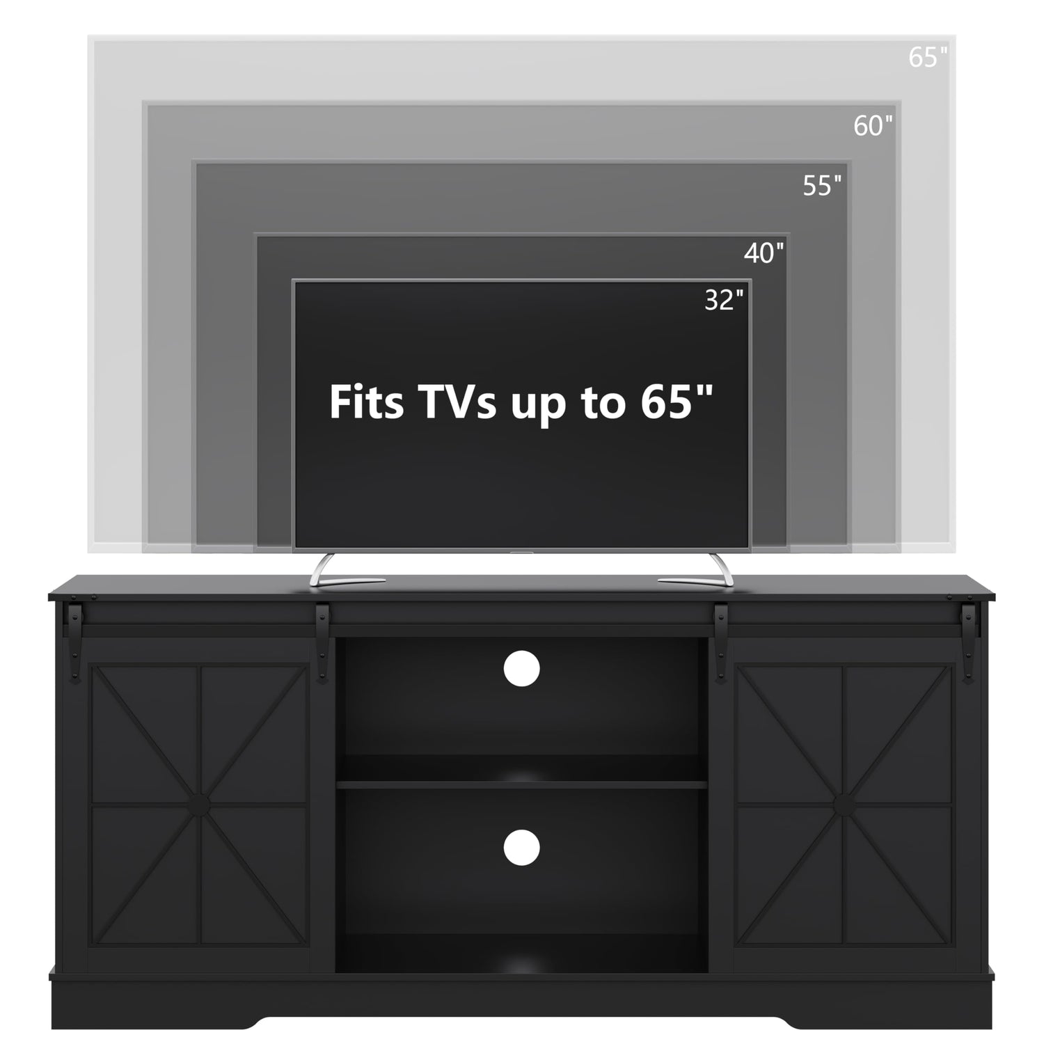 Farmhouse TV Stand for 65/60/55 Inch Tvs, Rustic Entertainment Center with Storage Cabinets & Sliding Barn Doors, Modern Media Console Table, Wood Television Furniture for Living Room, Bedroom, Black
