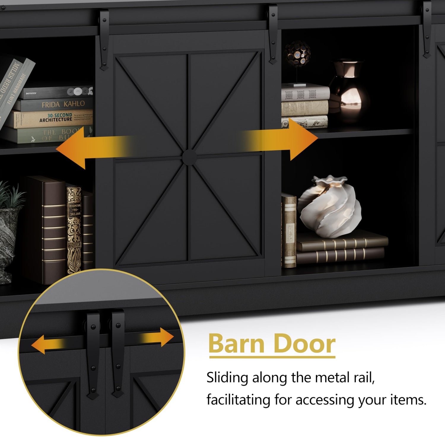 - 【Sliding Barn Doors & Cable Management】Two sliding barn doors on tv console for convenient access to cabinets and shelves. The movable metal rails ensure smooth and noiseless movement. Two Holes on the back allow cables from various devices to pass through. The cable management system keeps your wires hidden to ensure a clean and tidy appearance