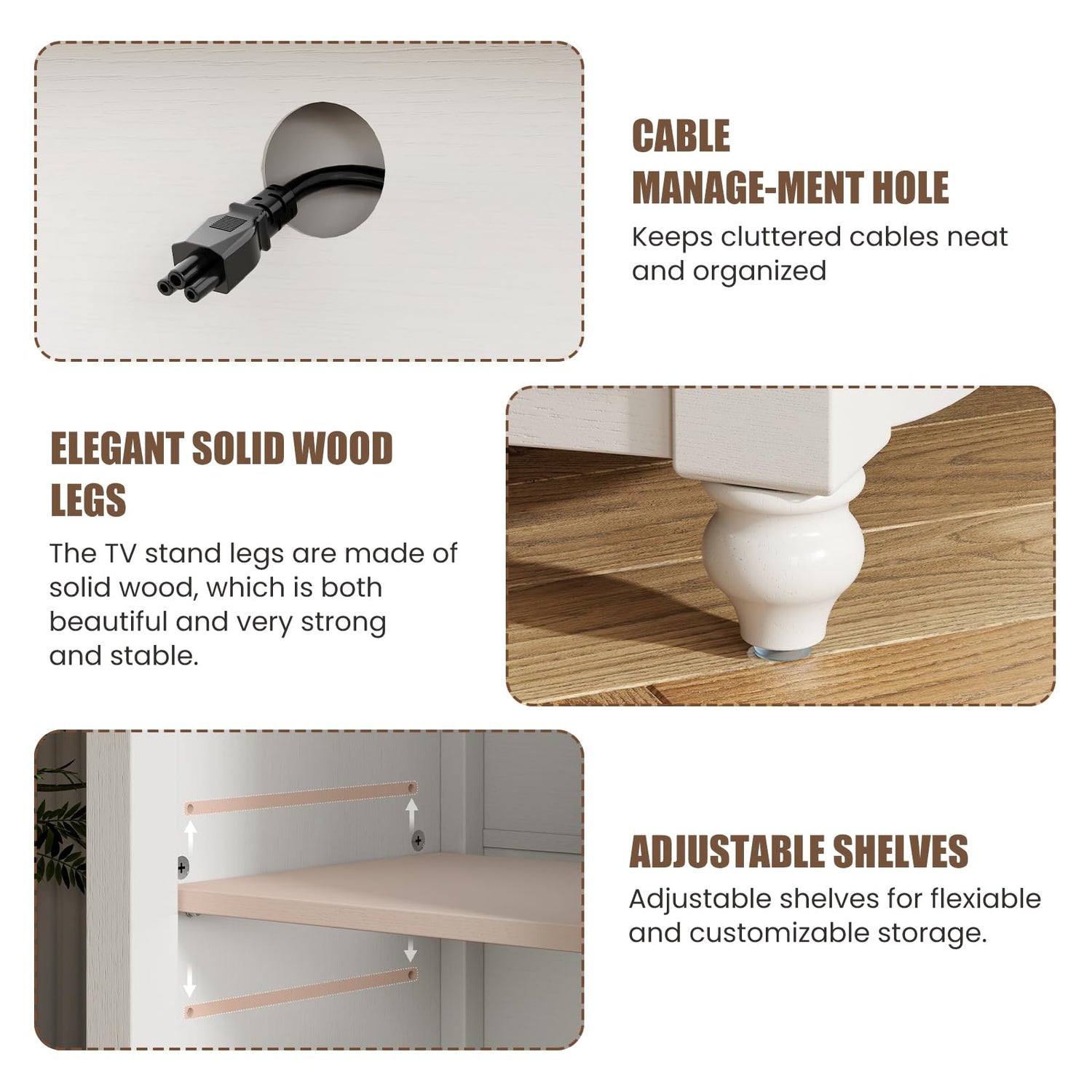 - [Durable Farmhouse Media Console]Crafted for longevity, this farmhouse entertainment center uses scratch,water-resistant particle board with 132lb load capacity. Its white entertainment center profile effortlessly fits modern or rustic spaces, while the tall entertainment center structure balances ample storage and sleek aesthetics.