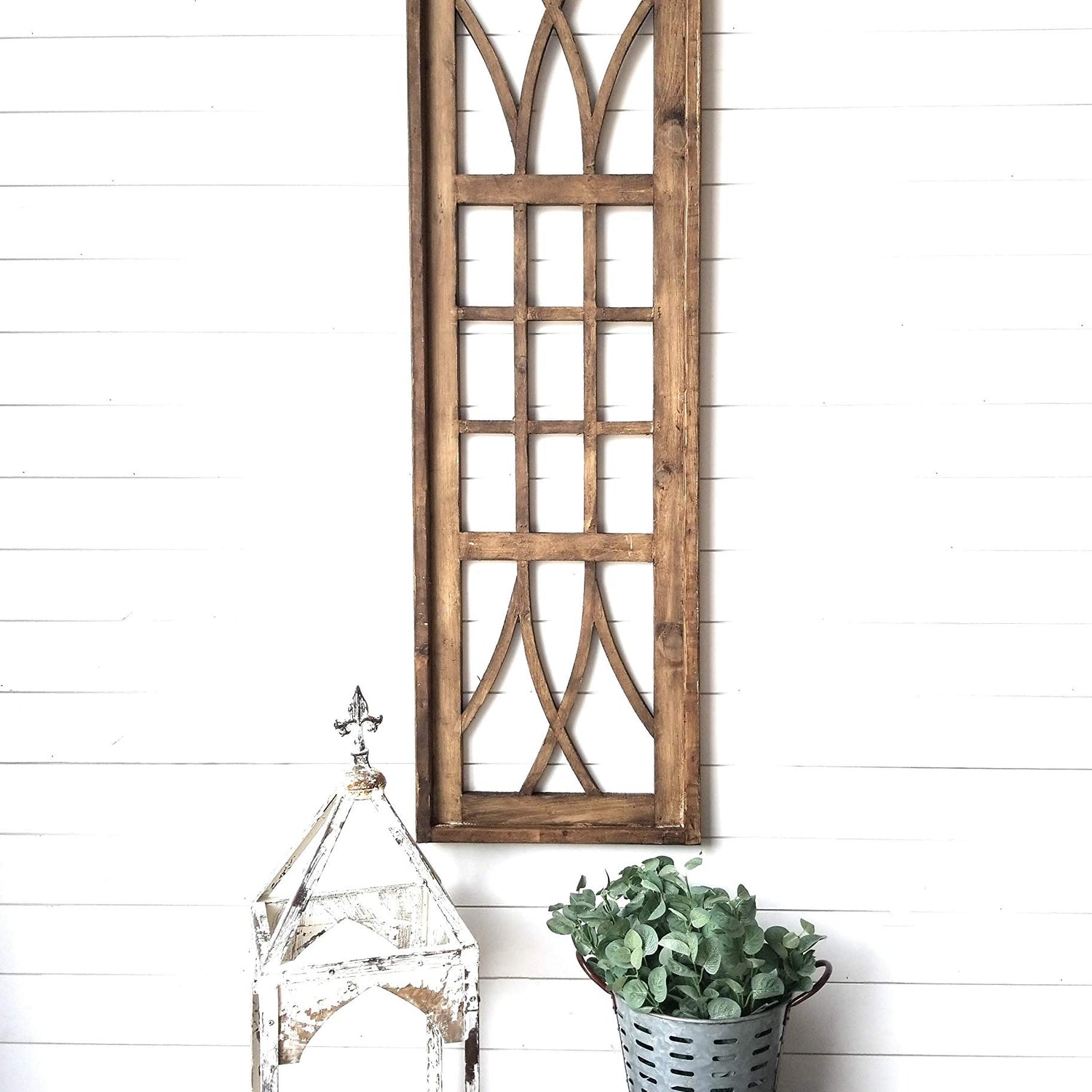 Details: Measurements: 60" L X 18" W X 1.5" D Each Window- *Wreaths Not Included Meet the Longview Window- a tall farmhouse square cathedral style wall decor window. *Wreath not included. Great for any farmhouse/rustic decor accent piece. It is a rustic style wood window- natural wood color. It is heavily distressed and handmade- so every piece will be one of a kind. Display this beautiful window vertical or horizontal. *Note: Colors may vary slightly depending on computer/mobile device screen or lighting. *Please note there may still be rough edges/spots but we think this is what makes these pieces unique and one of a kind. Each of these are hand crafted. Every piece of wood has its own special story, imperfection and all. Colors, textures, and character marks will always be different from piece to piece.