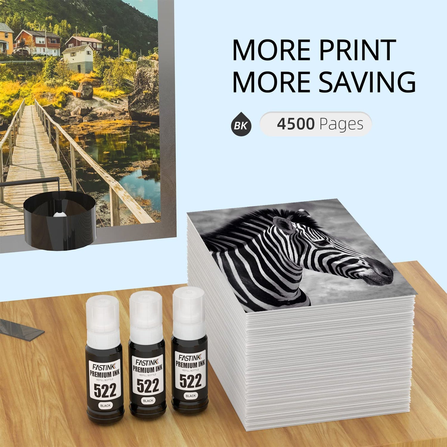 - ✅Extra-large capacity ink bottle:3 bottles of 522 black ink can print up to 13500 pages(5% coverage), longer replacement interval.