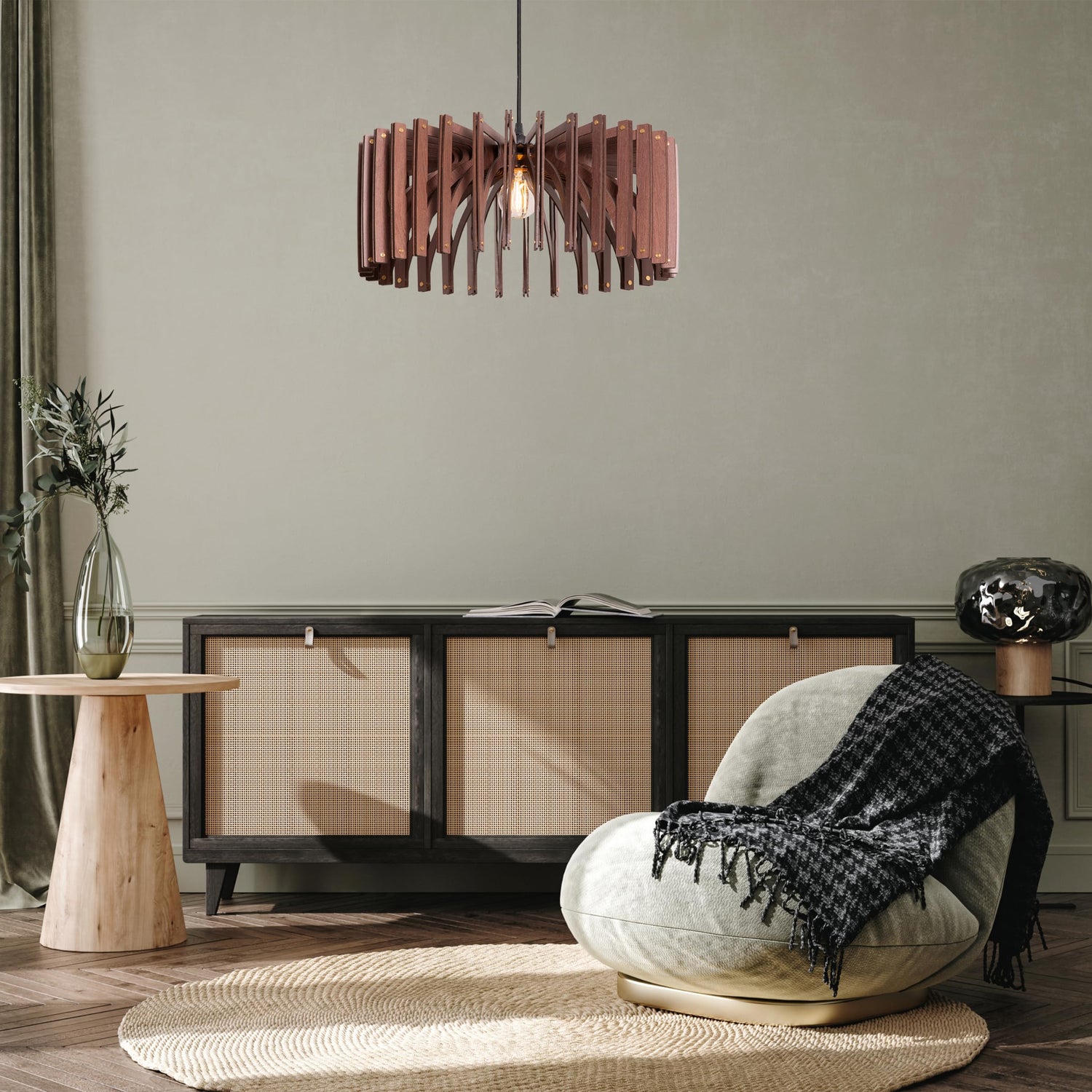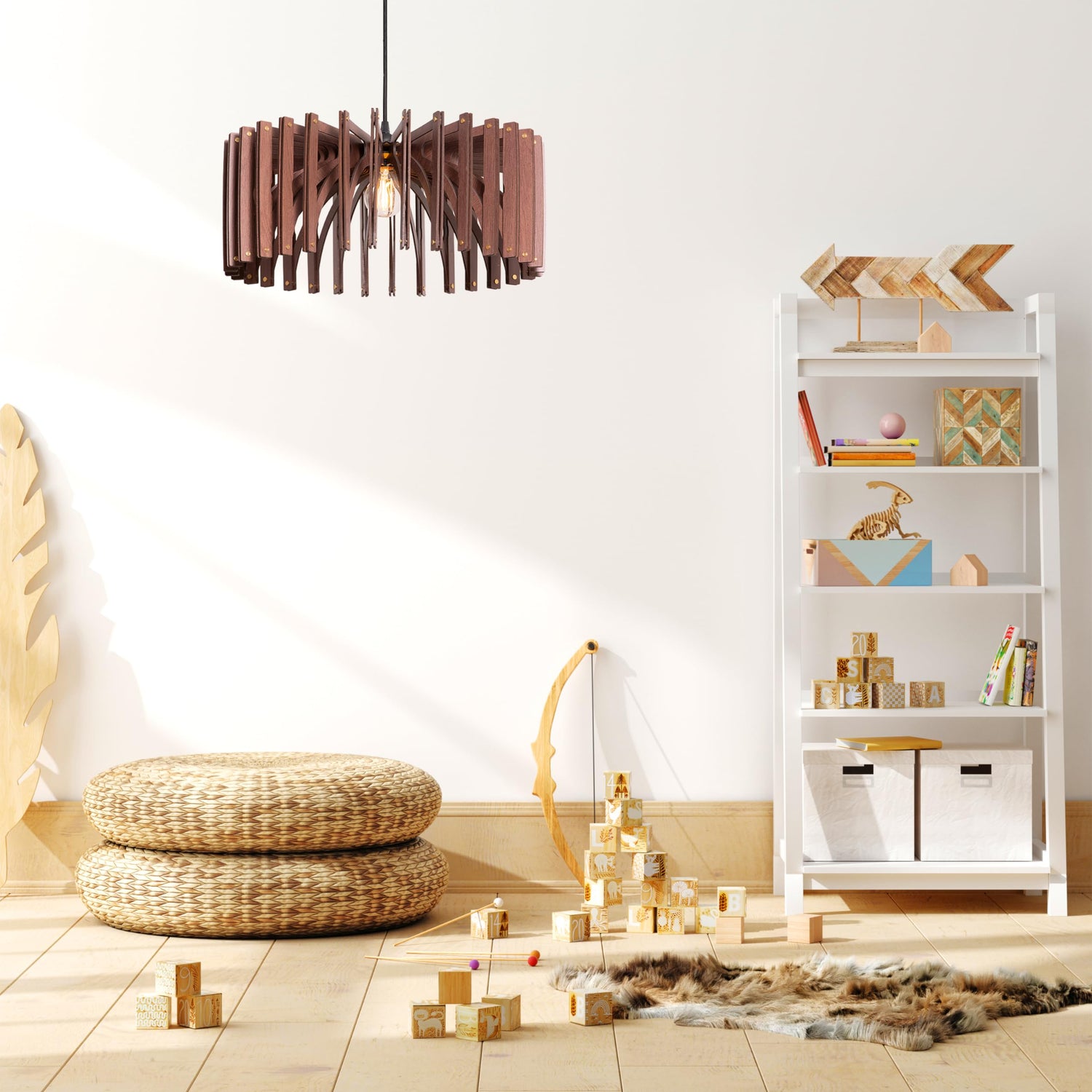 - MID CENTURY MODERN STYLE PENDANT LIGHT: Create an impressive focal point with this wood pendant light that casts spectacular light patterns on the surrounding walls and ceiling. It belongs anywhere in the home but looks particularly elegant suspended over a kitchen island or dining table.