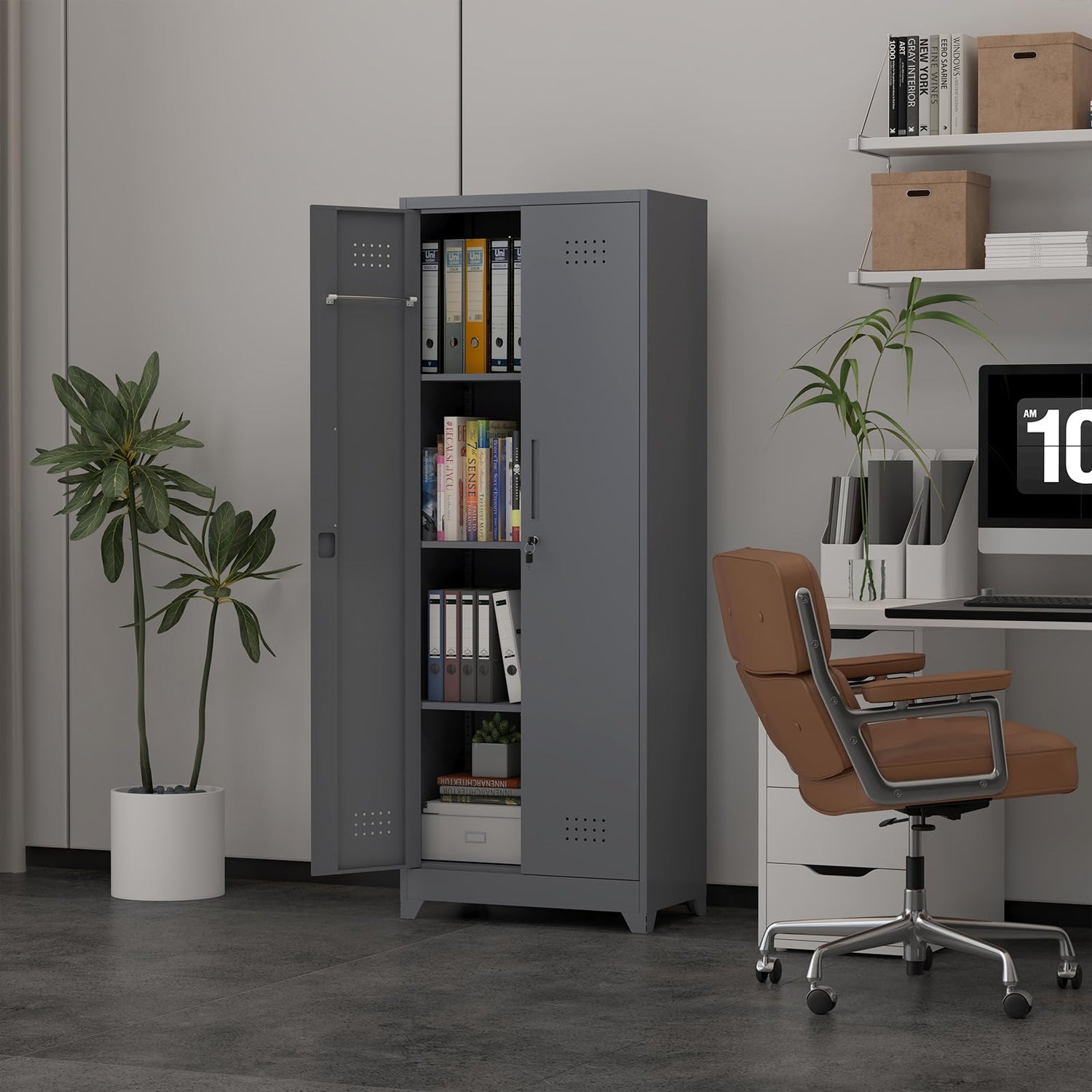 - 🎄🎄🎄【Multi-Purpose】The broom closet cabinet can store different items such as mops, brooms, fishing rods, towels, clothes, documents, etc. and can be used in offices, storage rooms, garages, homes, warehouses, laundries, basements, or anywhere you need a secure storage space.