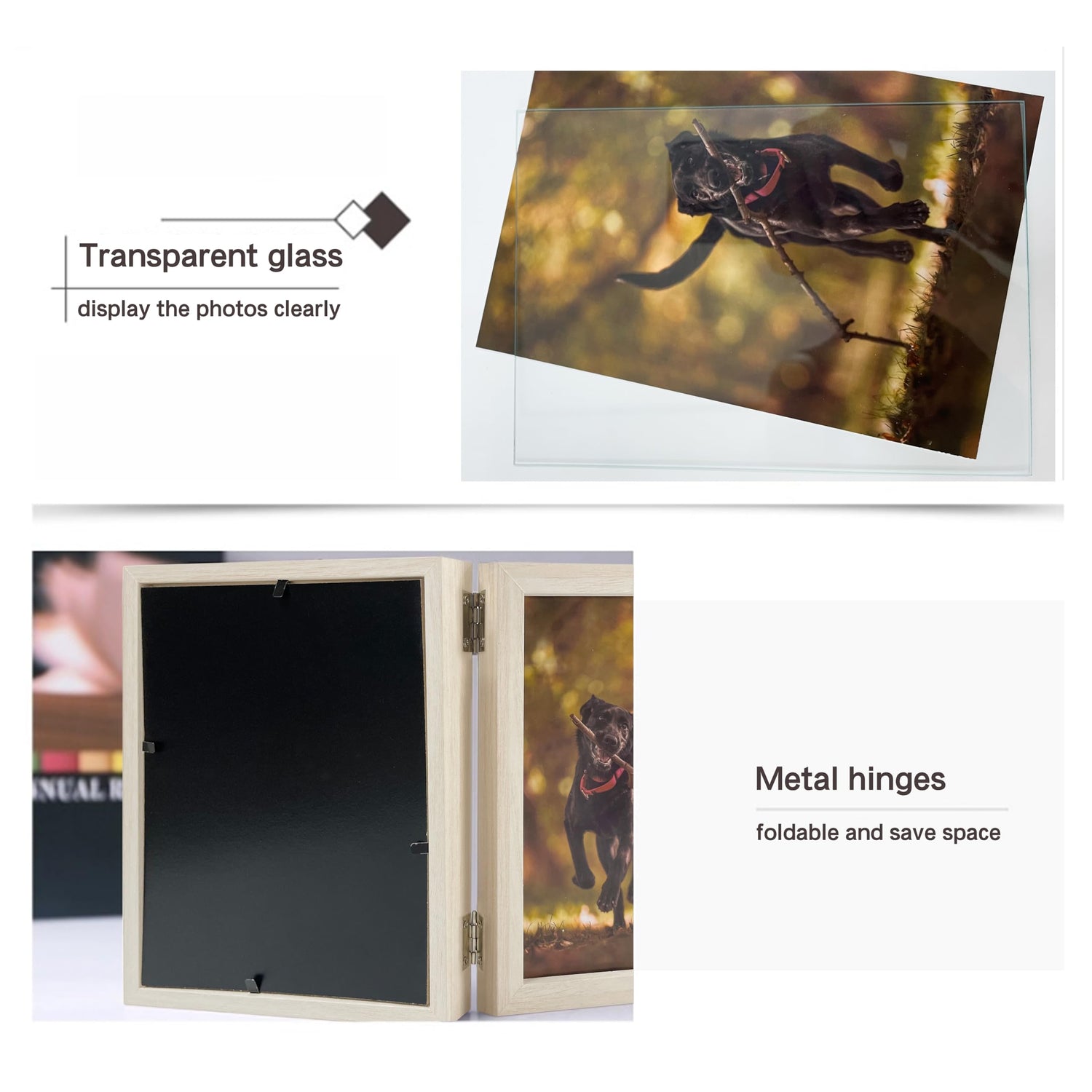 - One Frame Holds 3 Pictures: This 5x7 dog picture frame has 3 spots to display your pet’s photos: the front, the openings and the shadow box part. When it's closed, there is a picture on the front. When you open it up, you'll have a picture on the left and a shadowbox on the right. It is easy to change pictures also, just slide the glass up