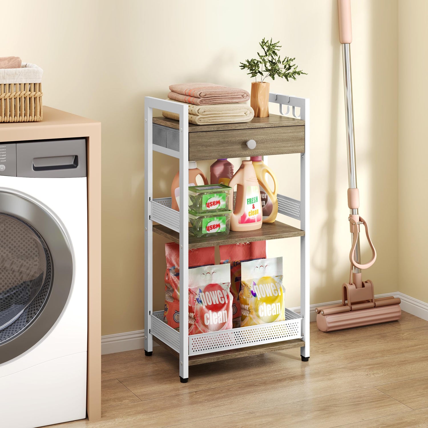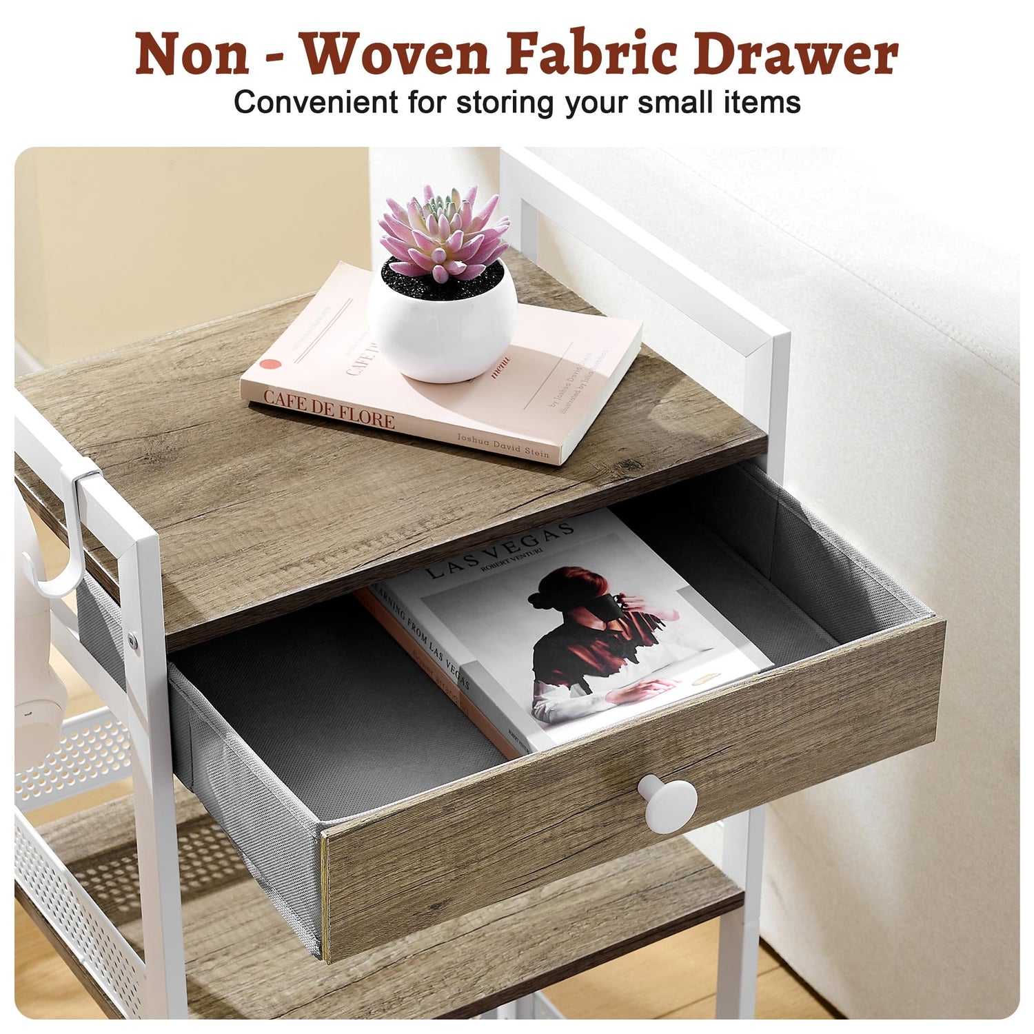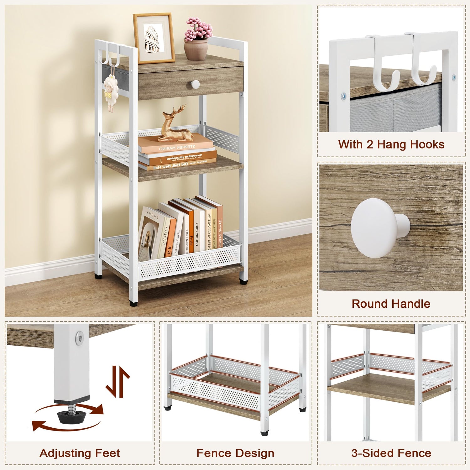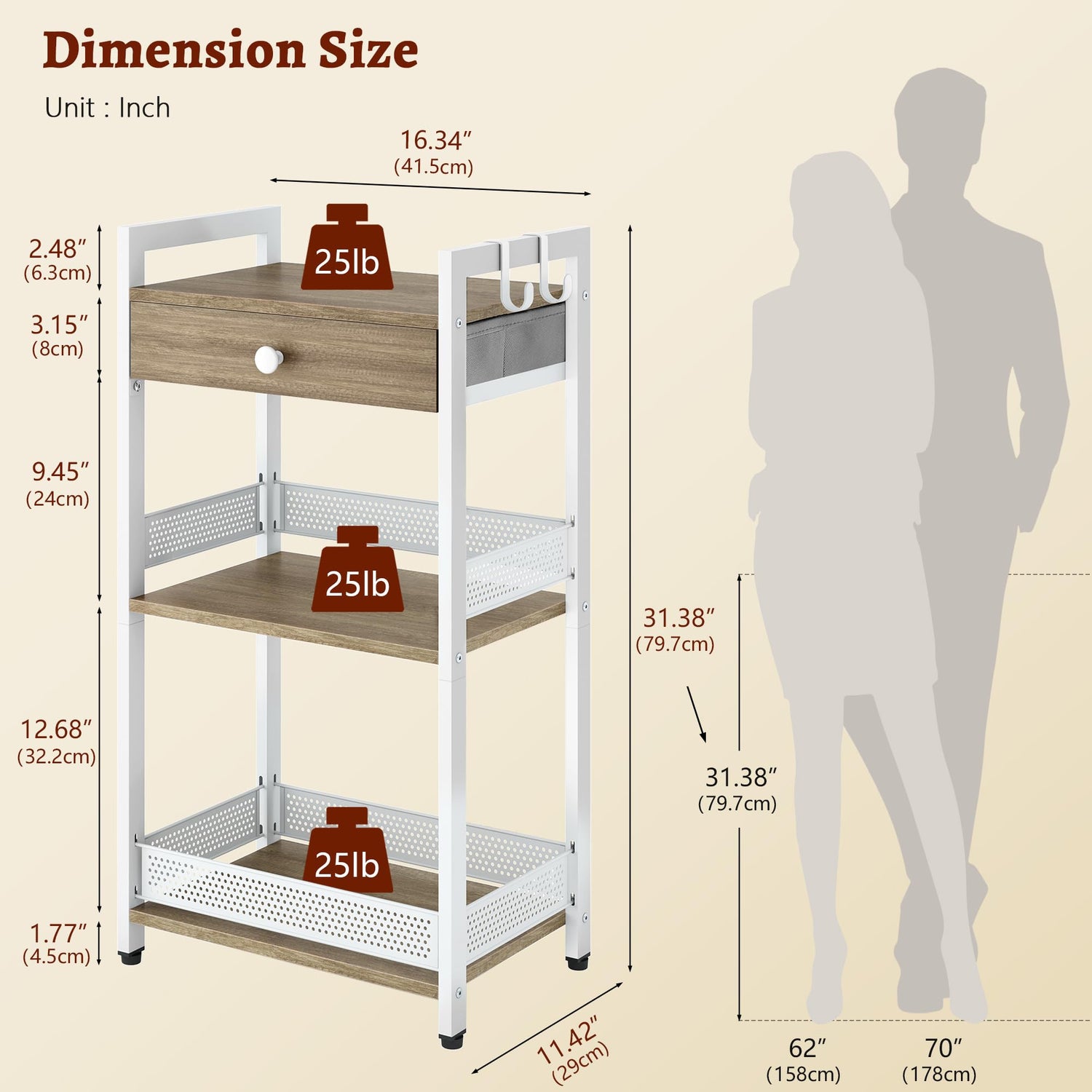 - One Removable Fabric Drawer: The bathroom table stand with an additional fabric drawer which is light and soft, to store hair clips, combs or other personal items, makes full use of vertical space to keep your home, office, apartment tidy and organized. Comes with 2 hooks, perfect for hanging towels.