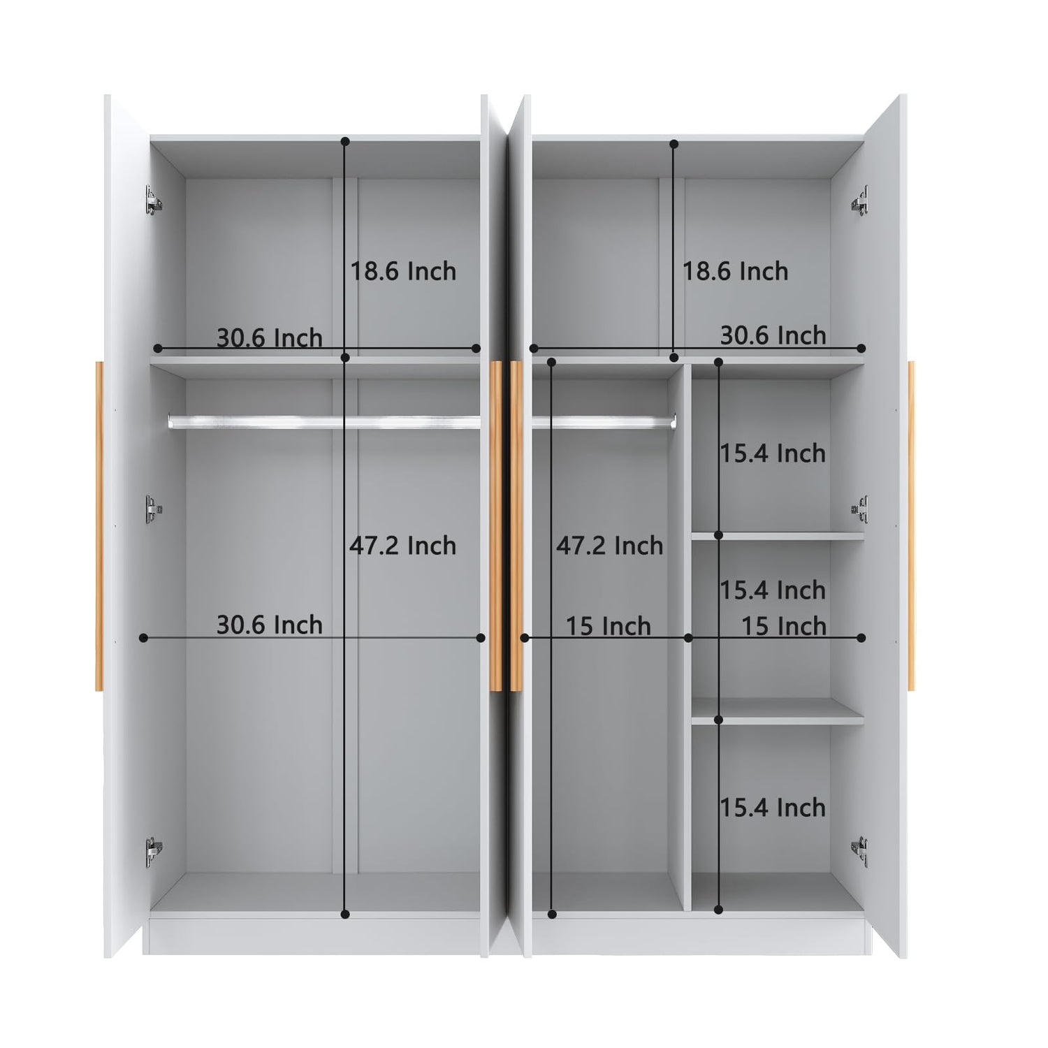 Fddevelop 4 Doors Wooden Wardrobe Closet Armoire, White Storage Cabinet for Hanging Clothes, Bedroom Extra Large Capacity Freestanding Armoire,Wood Wardrobe Combination with Shelves (White) (White)