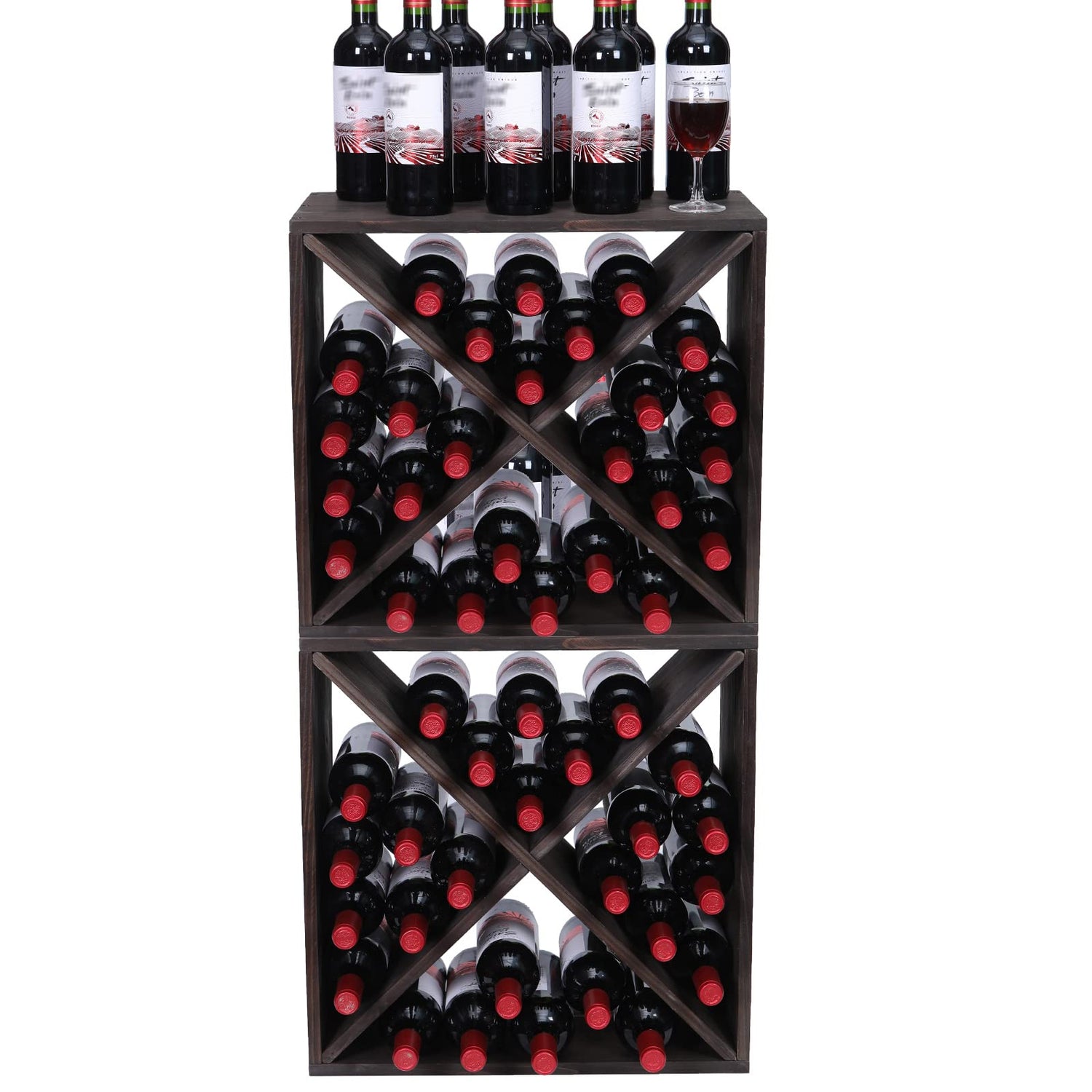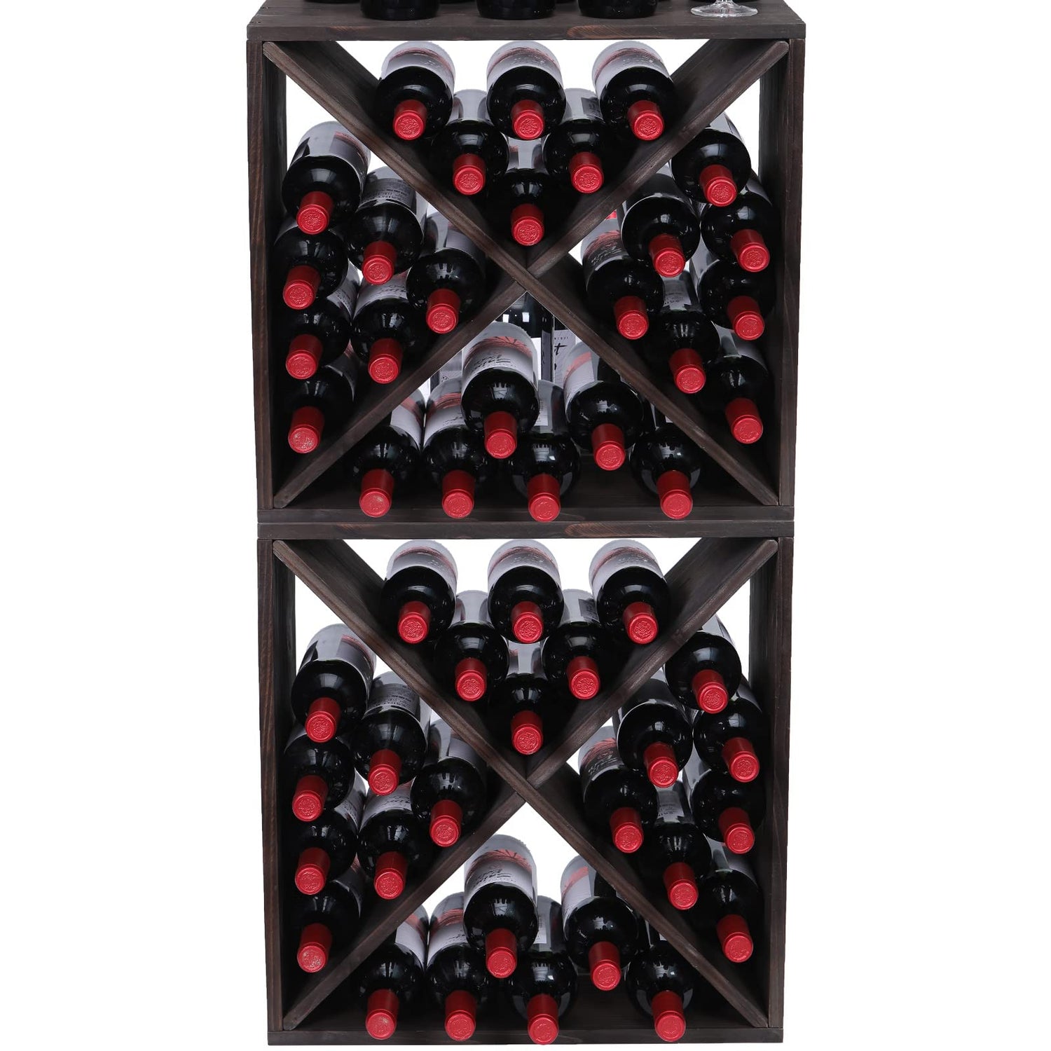 FDHUIJIA Wine Racks countertop Solid Wood Stackable Storage Rustic Retro Cube 48-Bottle Wooden Wine Rack Wine Cabinet(48BottleBlack)