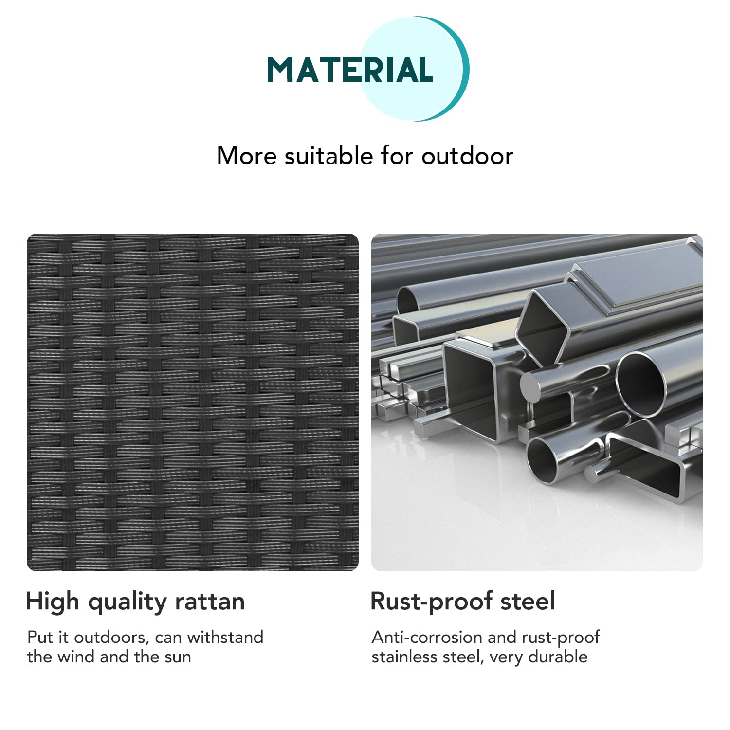- ♬【STRONG & STURDY】-This patio furniture set is made with a powder-coated steel frame and all-weather PE rattan wicker for a comfortable experience.The wicker of the Outdoor furniture set is sturdy but also very light. The seat cushion of this patio Conversation Set can be removed for easy cleaning.