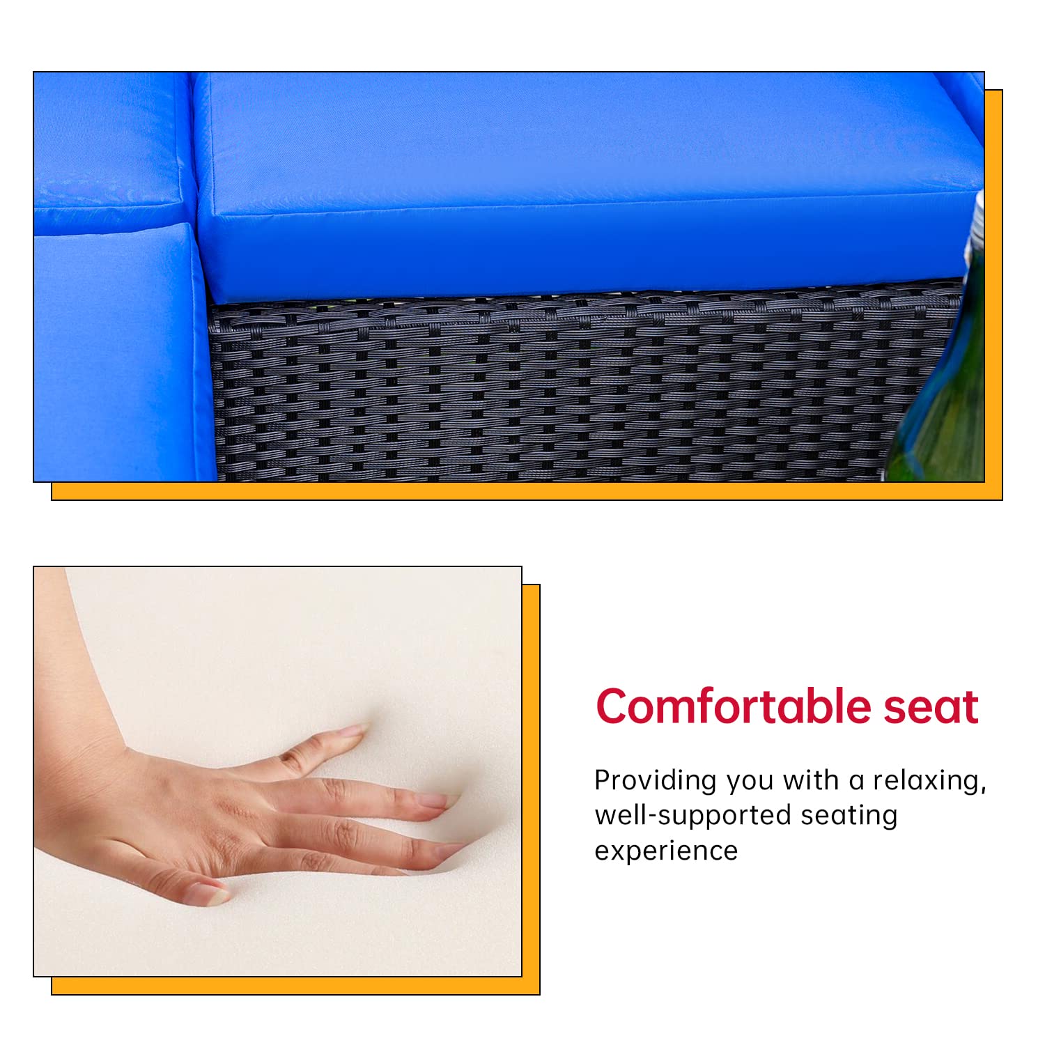 FDW 5 Pieces Patio Furniture Sets Outdoor Sectional Sofa Wicker Chair Rattan Conversation Set for Outdoor Backyard Porch Poolside Balcony Garden Furniture with Coffee Table,Blue Cushion