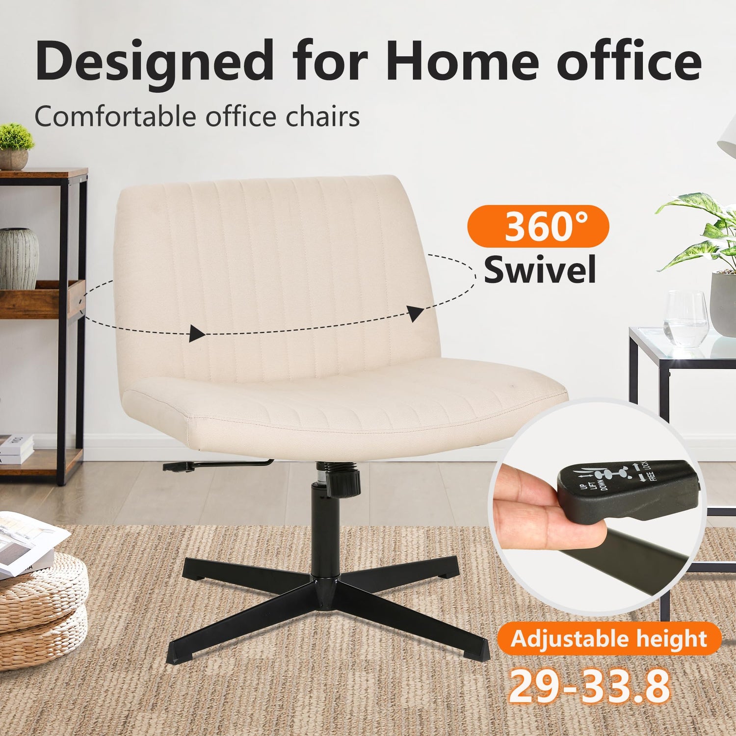 FDW Criss Cross Chair Armless Cross Legged Office Desk Chair Adjustable Swivel Ergonomic Desk Chair No Wheels U Shaped Backrest with Wide Seat Native Sponge Computer Task Vanity Chair for Home Office