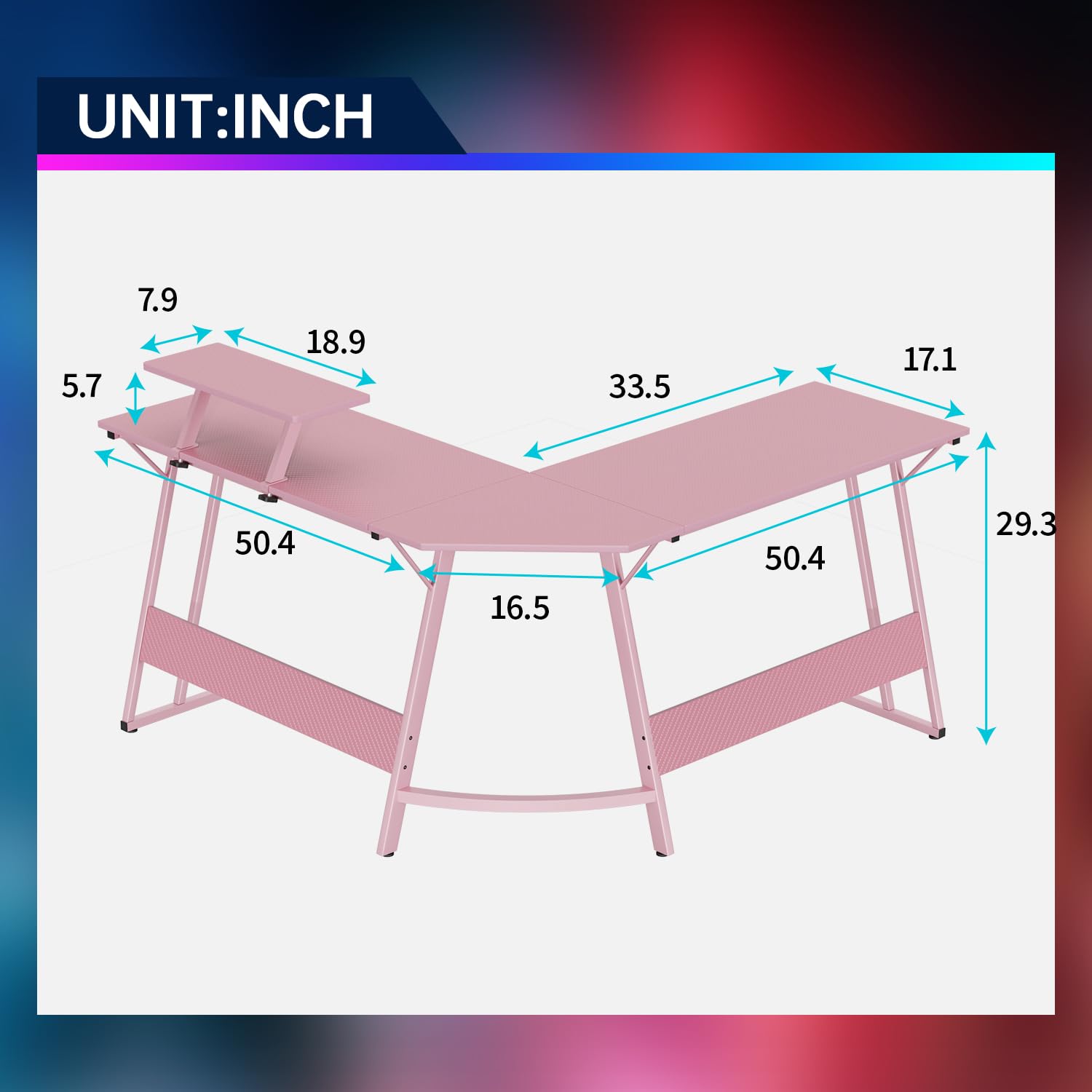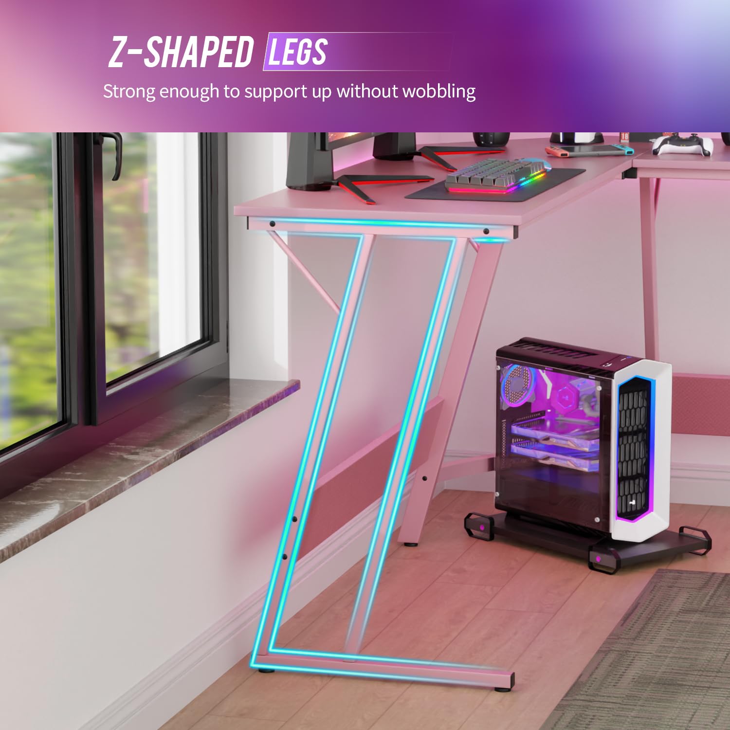 FDW L Shaped 51 Inch Gaming Desk,Corner Computer Desk,PC Gaming Desk,Writing Workstation with Large Monitor Stand for Home Office,Pink