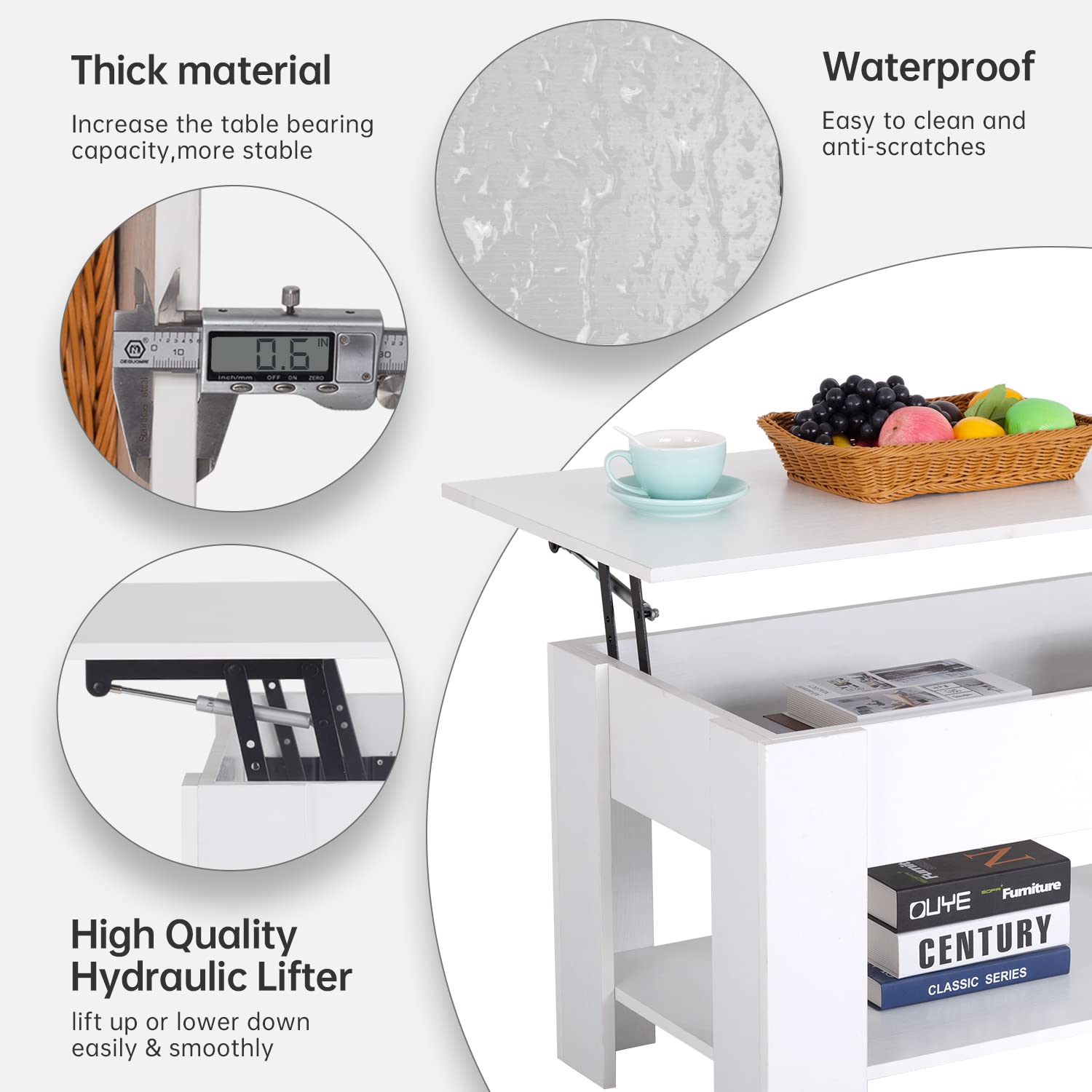 - 👍·LIFT-TOP Design: The tabletop of this coffee table can be effortlessly lifted up and forward to create a workspace when sitting on your sofa. The high-quality metal mechanism enables the tabletop to be lifted up or lowered down easily and without noise.