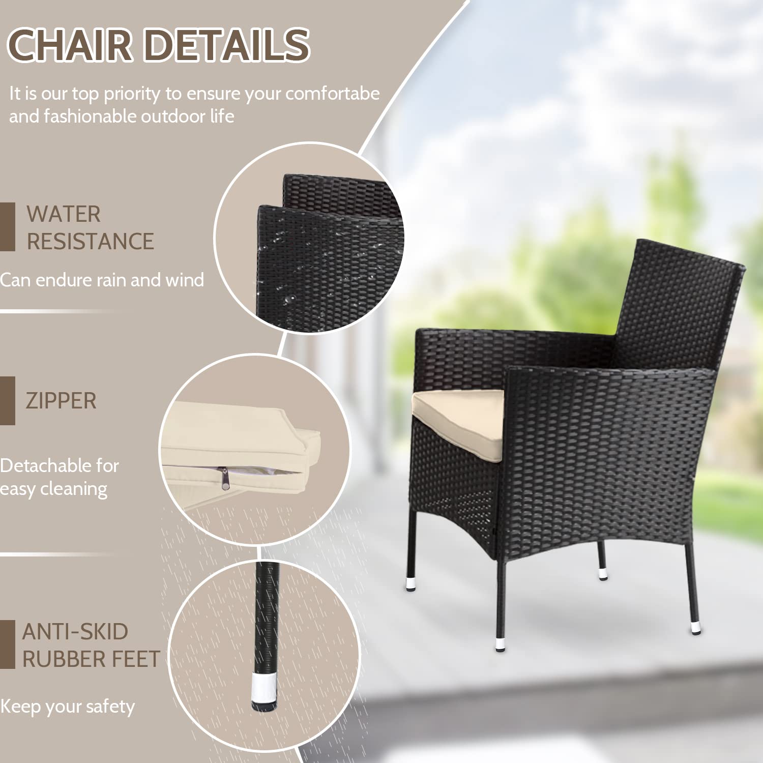 - ✔〖STRONG AND STURDY〗:This patio furniture set is made with a powder-coated steel frame and all-weather PE rattan wicker for a comfortable experience.The wicker of the Outdoor furniture set is sturdy but also very light. The seat cushion of this patio Conversation Set can be removed for easy cleaning. Outdoor Furniture Set Patio Wicker Furniture Set Patio Sofa Garden Conversation Set.