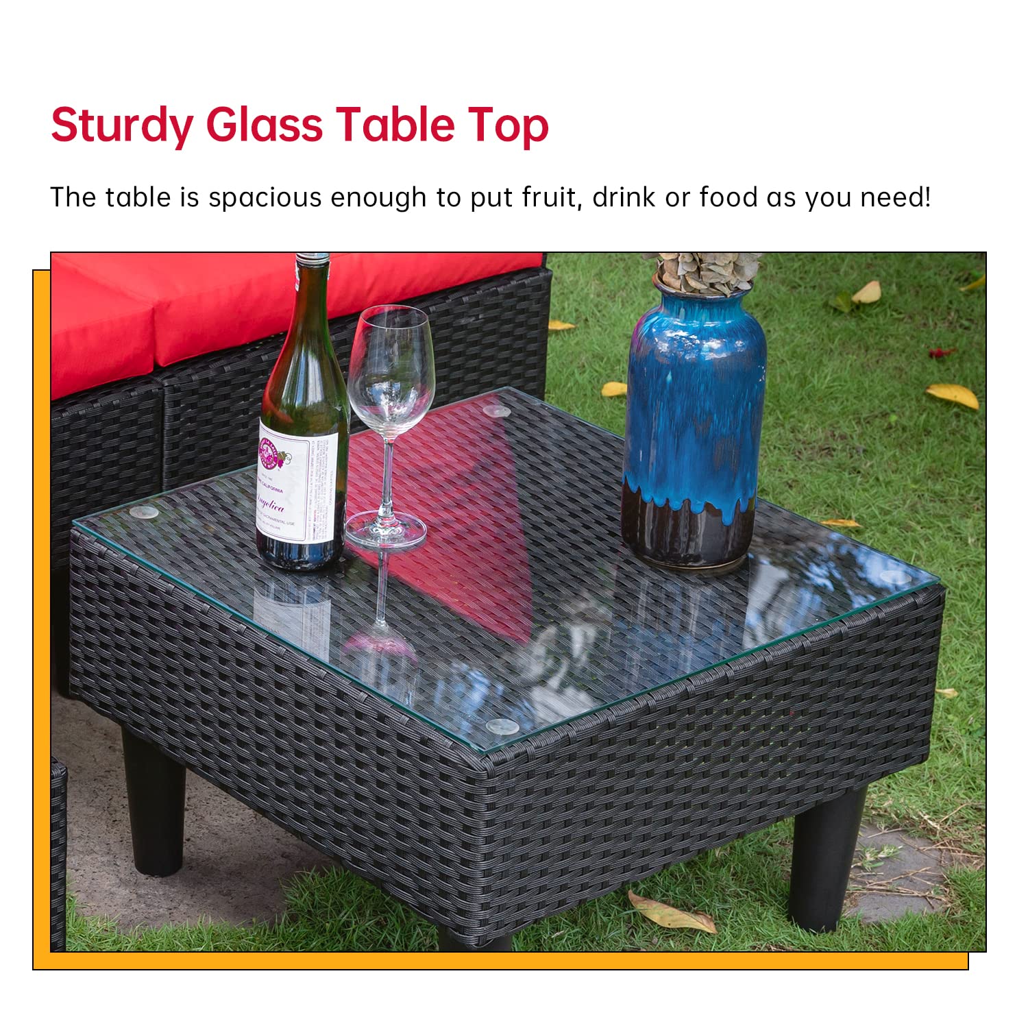 - MODERN STYLE: The patio set includes a table made of high-quality tempered glass for drinks, food, or décor. This sleek rattan design brings modern elegance and style to your outdoor furniture space.