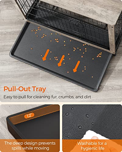 Feandrea 44.1" Dog Crate Furniture, Indoor Dog Cage Side End Table, XL Pet Wood Kennel for Large and Medium Dogs up to 80 lb with Multi-Purpose Removable Tray, Double-Door Pet House, Greige
