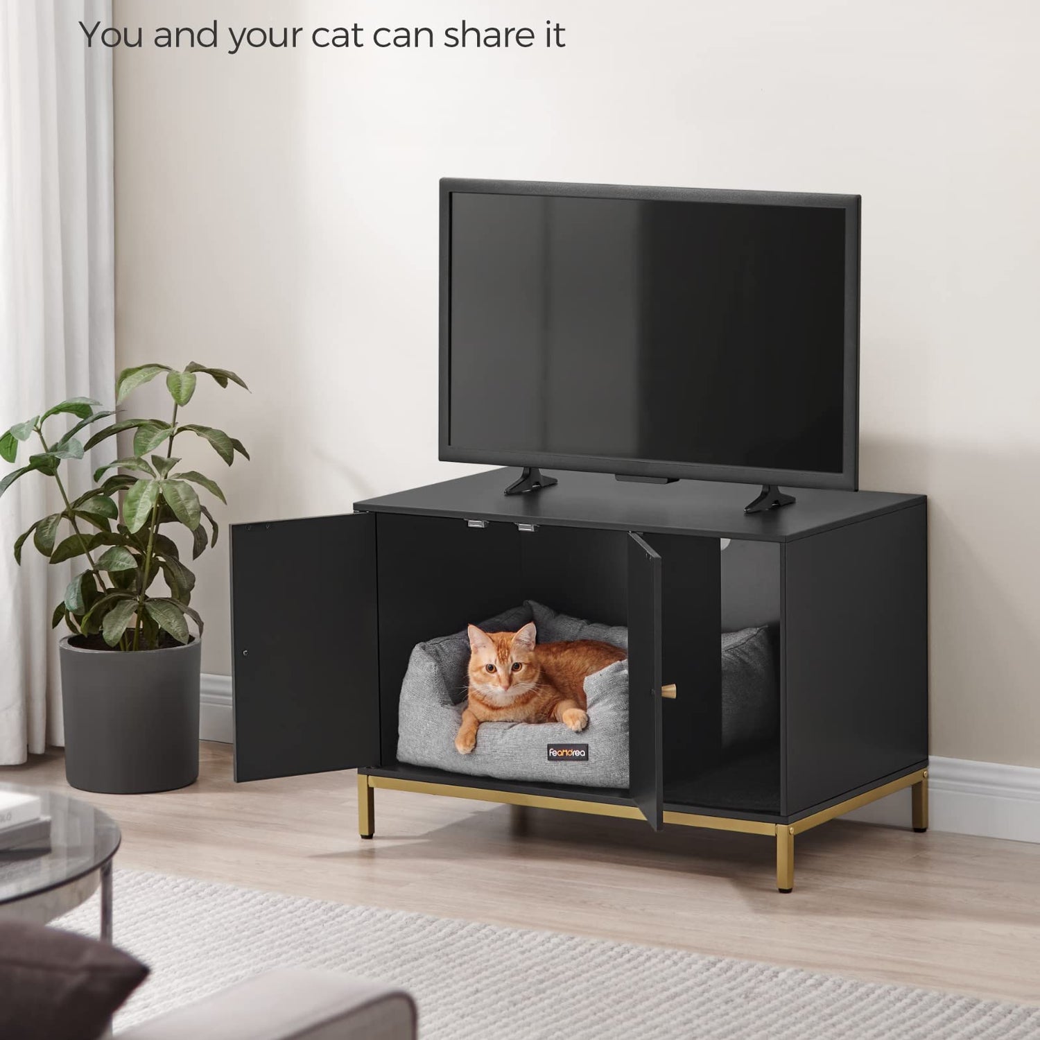 - [For Cats, Also for You] Make it a litter box cabinet to hide the mess or add a cat bed inside for a cozy cat house, and use it as a side table or TV stand for your convenience—you and your cats can share this multifunctional cat furniture piece together