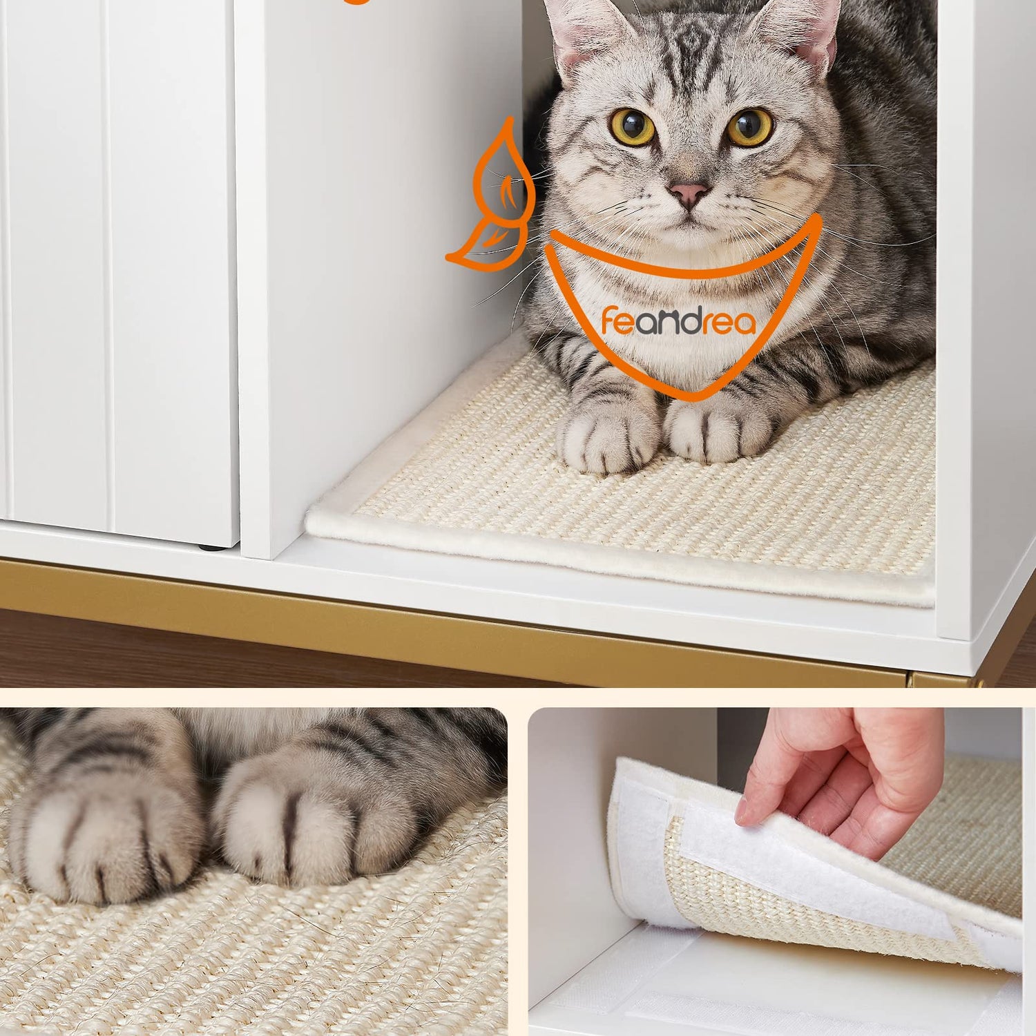 - [Satisfies Cats' Natural Instincts] The hidden litter box creates an enclosed space, giving your cat some privacy; the winding entry meets cats' natural love for exploring; a scratching mat in the entry lets your cat scratch while it traps stray litter
