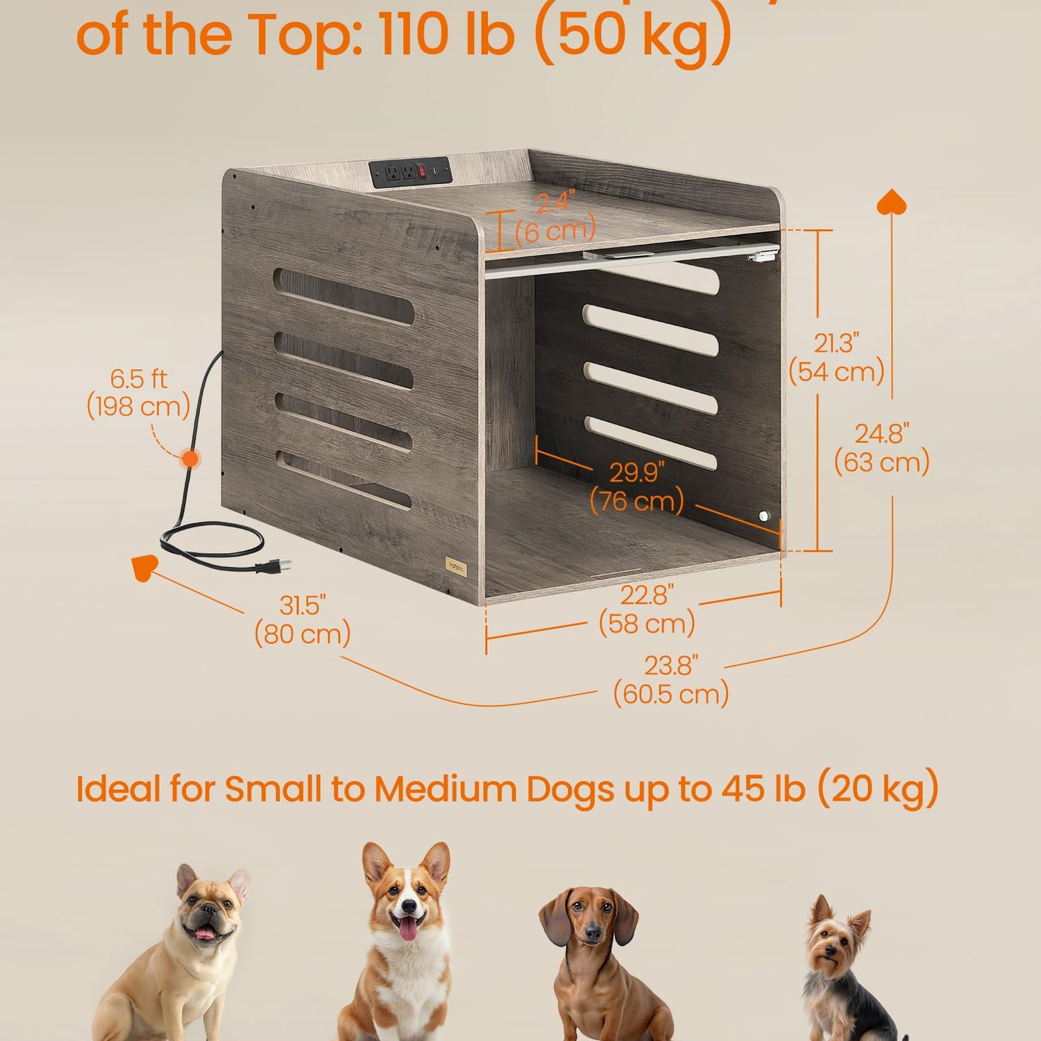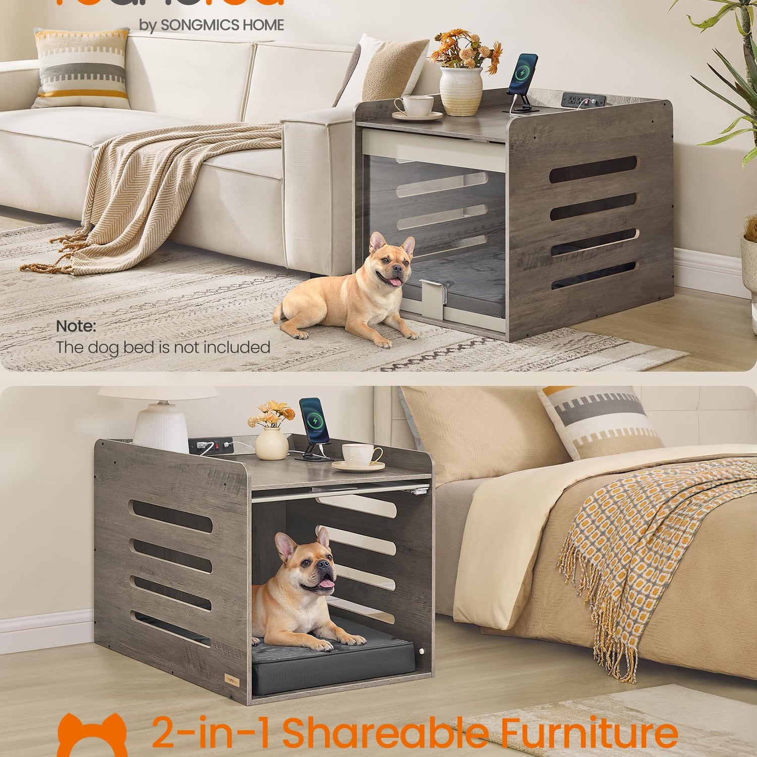 - 【DOGS AND HUMANS CAN SHARE】Create a safe haven for your furry friend, or use it as a side table or nightstand with charging station while enhancing your home decor. This 2-in-1 dog crate furniture piece meets both you and your dog's needs