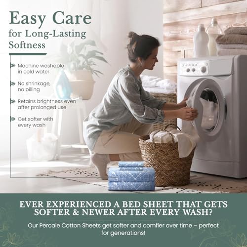 Feather & Stitch Softest 100% Cotton Sheets, 300 Thread Count Percale Weave Bedding, 16" Deep Pocket, Cooling Sheets, Breathable Bed Set, Hotel Premium Quality (King Blue Paisley)