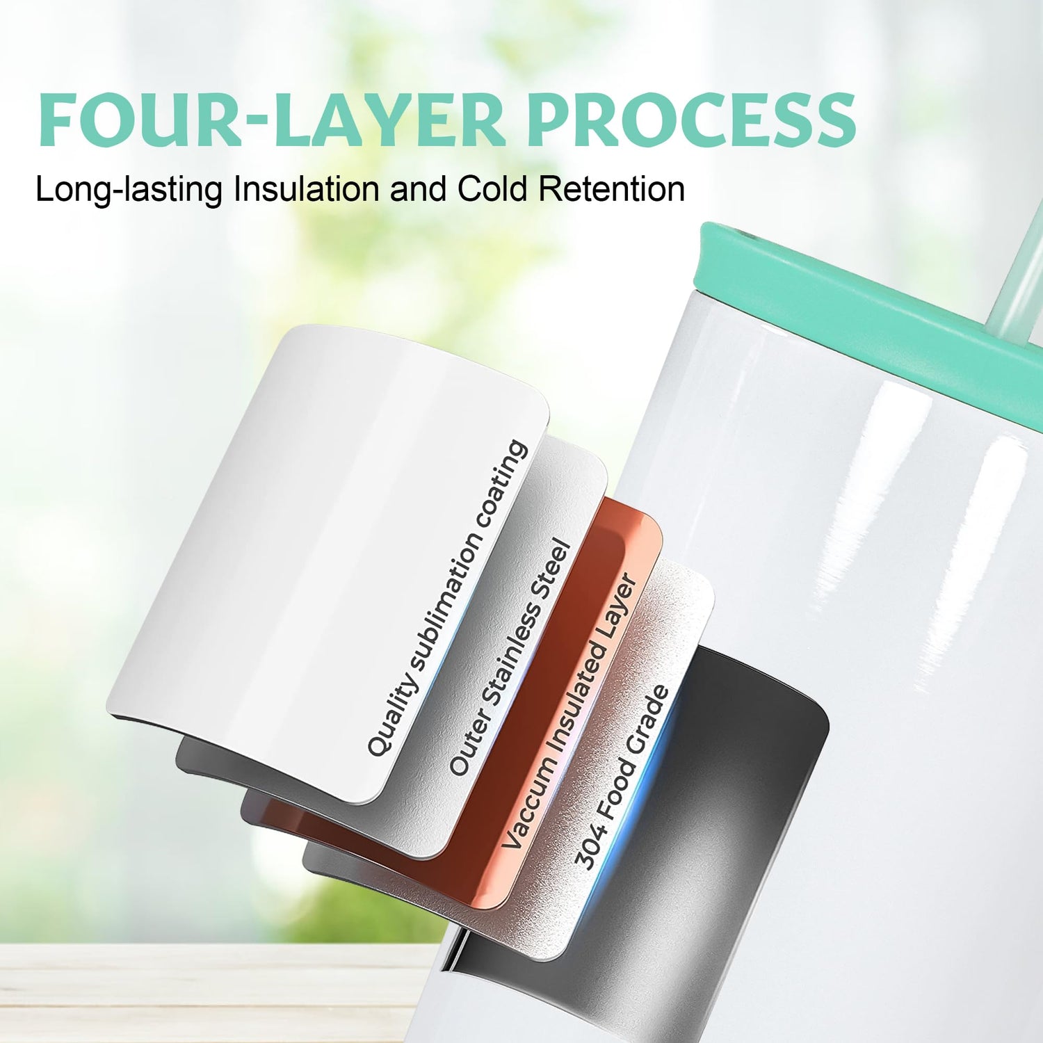 - 【SIP IN STYLE WITH FECBK SUBLIMATION TUMBLERS】Our 40 oz sublimation tumblers printing with 100% color retention, they can be sublimated using a heat press machine or convective oven, and these sublimation cups are coated with a premium polymer sublimation coating, ensuring your design will remain vibrant and will not fade over time. Say goodbye to dull cups and hello to personalized, eye-catching drinkware that stands out from the crowd