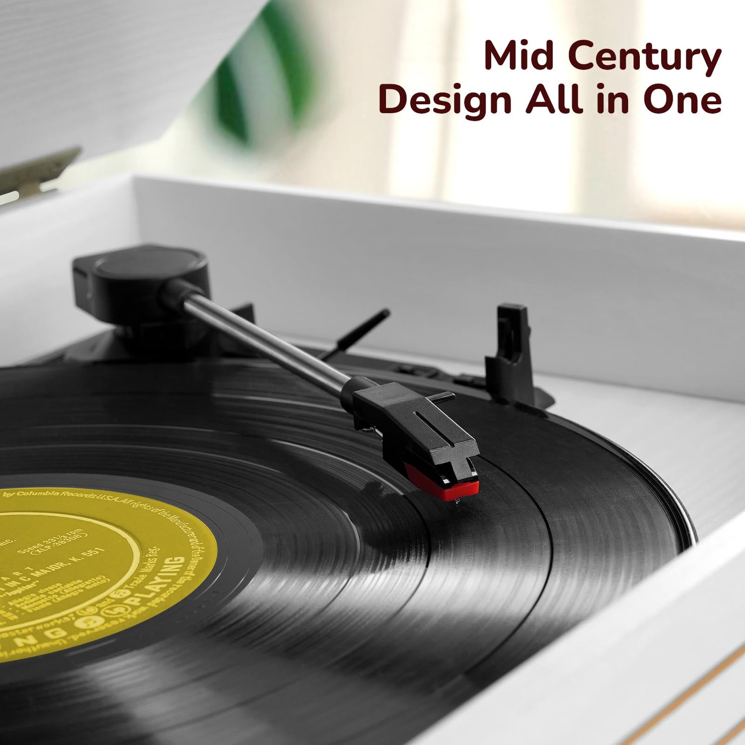 - [Three Speed Turntable with Belt drive]-This 3-speed (33 1/3, 45, 78 rpm) record player features high quality stereo sound quality with minimum vibrations. It is perfect for your living room, bedroom or office and a great choice for vinyl lovers.