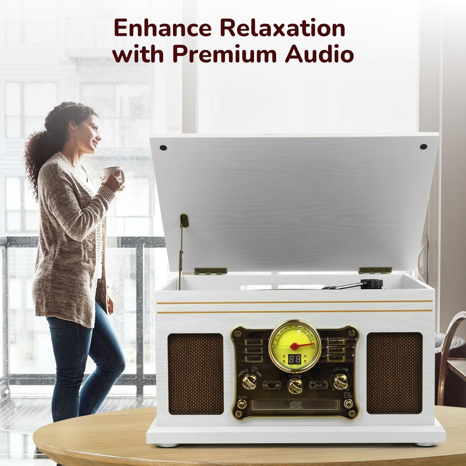 FEKTIK Bluetooth Record Player 10 in 1,FEKTIK 3-Speed Turntable for Vinyl with Speakers, LP to MP3 Converter, CD, Cassette Player, FM Radio, Wireless Streaming | White