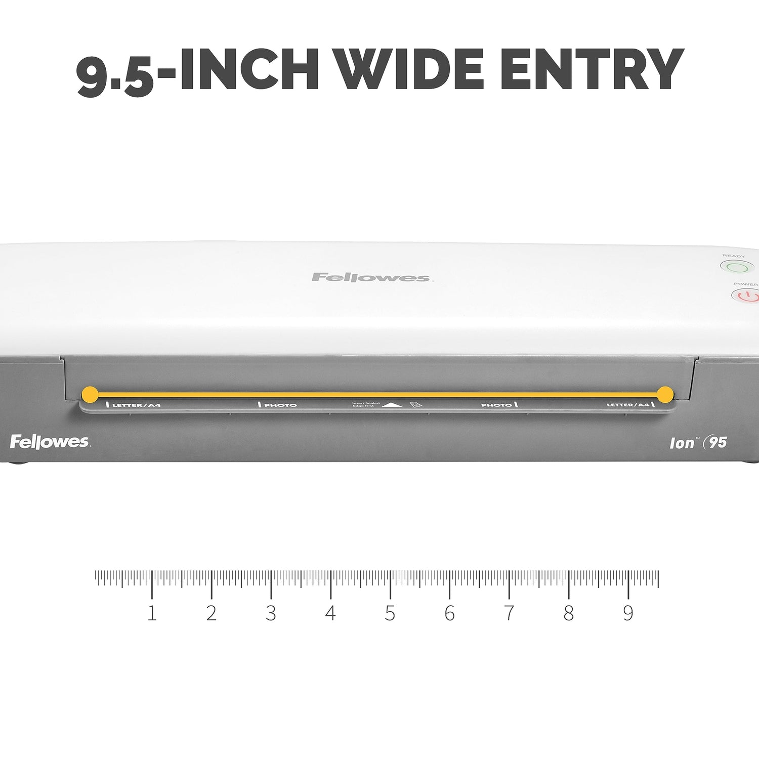 - 9.5” ENTRY WIDTH: The Ion 95 is prepared to laminate a multitude of document sizes – from business cards to school projects