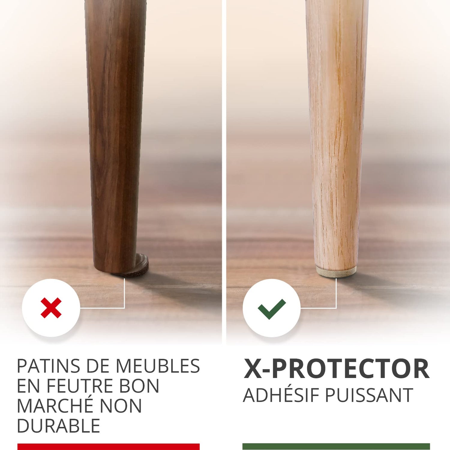 - ✌ X-PROTECTOR FURNITURE FELT PADS – best protection for Your wooden, laminate or tiled floors. Our furniture coasters create strong shields between floor and furniture, desks & tabletops, which carefully protect surfaces from scratches and scuffs.