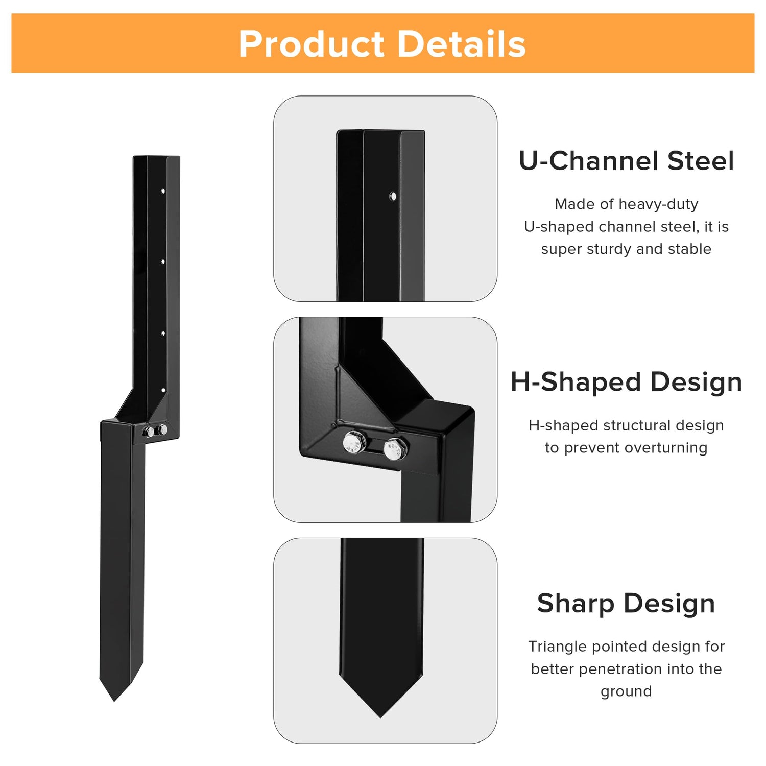 - 2-in-1 Design: Upgraded fence post anchor ground spike adopts a ingenious design of two-section connection, Which provides stronger support and stability than a straight spike, Fence post repair brackethas a sharper triangular cone-shaped tip at the bottom, Making it easier to insert into the ground. Even in tough soil conditions, the tip remains unbent and sturdy.