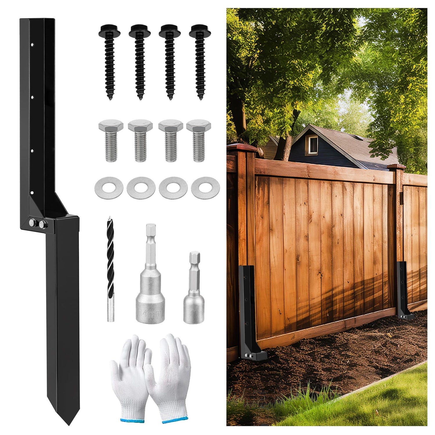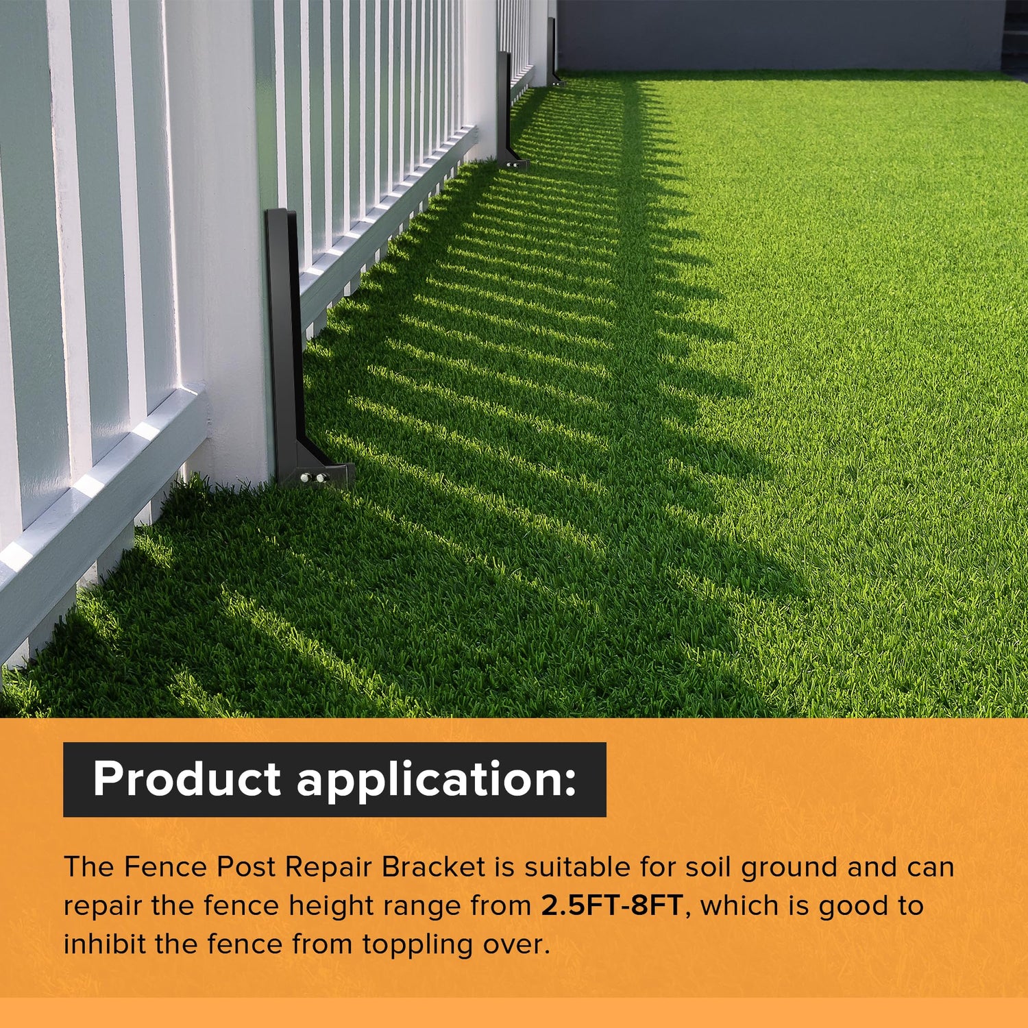 - Anti-Rust Steel: Fence post repair kit made of (1/8" X 2") S275-heavy duty groove steel, Simple and fast repair of leaning and broken wooden fence posts caused by high winds or geological reasons, Fence post anchors ground spike to can also great fix stabilized deck poles at the bottom of the stairs going up to the deck, effectively prevent deformation and corrosion, Fence post repair stakes save you time and money.