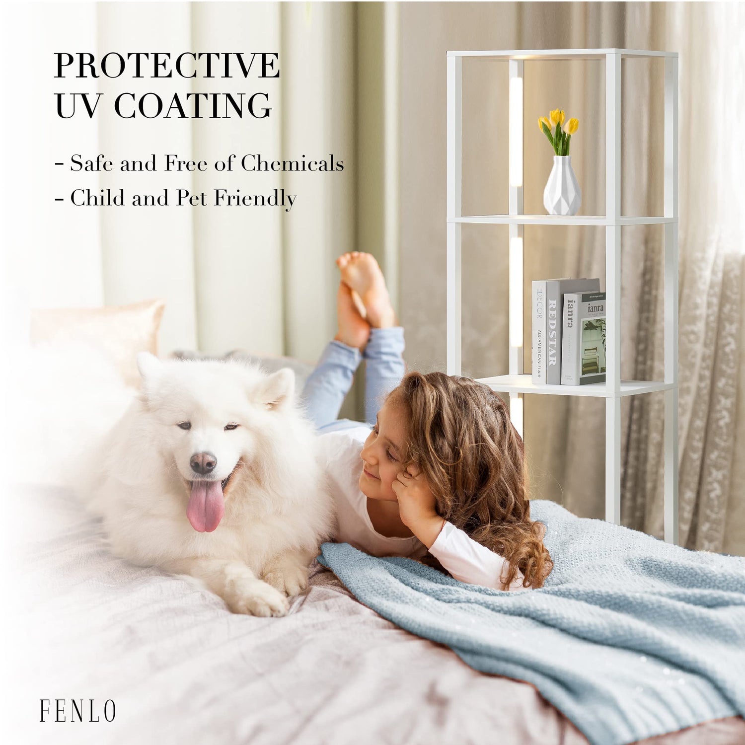 FENLO Fancy - LED Display Shelf with Dimmable Lights, LED Floor Lamps for Living Room, Sturdy Corner Curio Cabinet Display, Tall Floor Lamps with Shelves