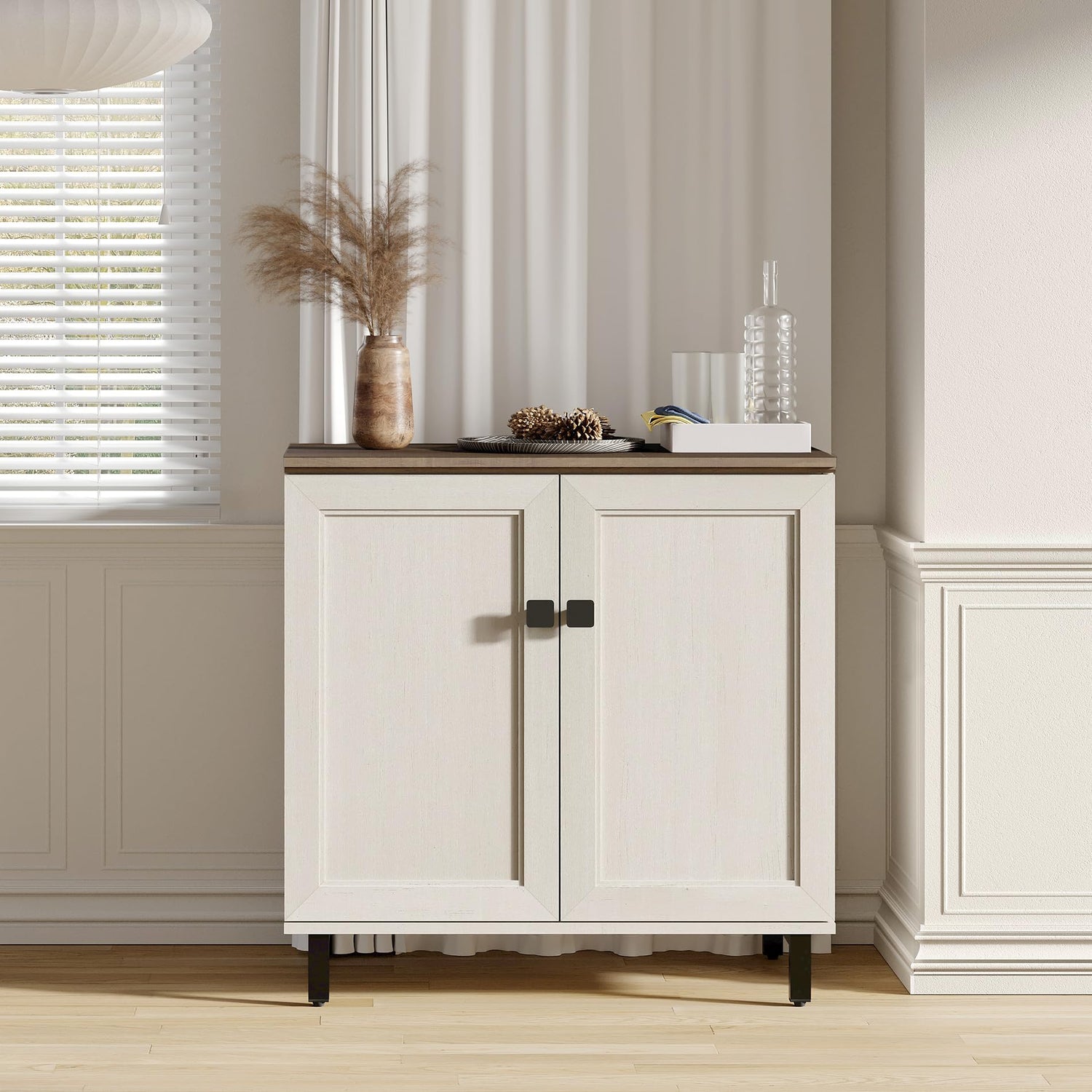 FENSULN Buffet Sideboard Cabinet Farmhouse Modern 3 in1 Storage Cabinet with Adjustable Shelves for Kitchen, Coffee Bar, Living Room, White