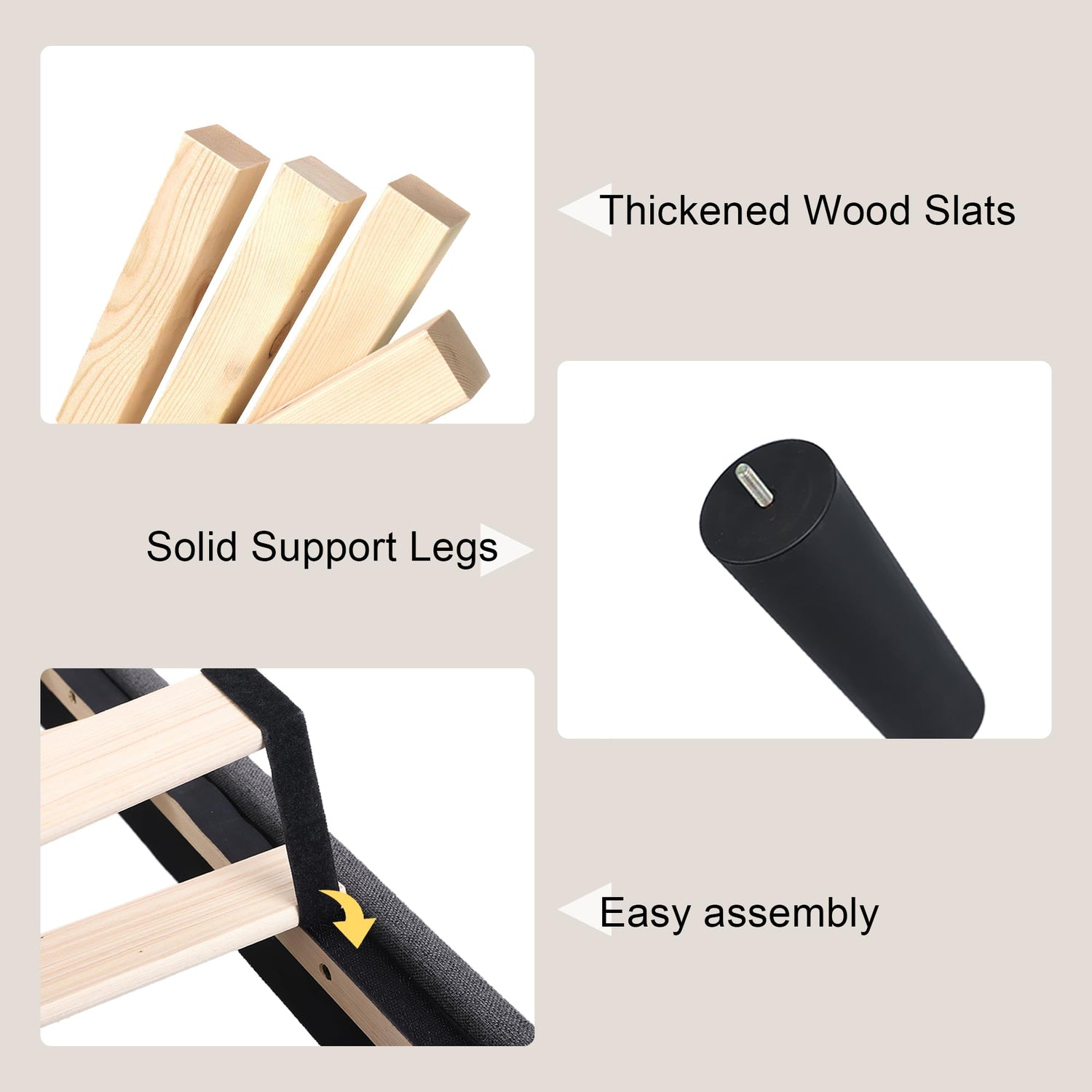 - Noise-Free & Easy Assembly: EVA strips between the slats and metal frame provide cushioning resulting in noise-free use. All slats are attached by Velcro. All pieces come with sequence numbers that can easily be done by one person within 30mins