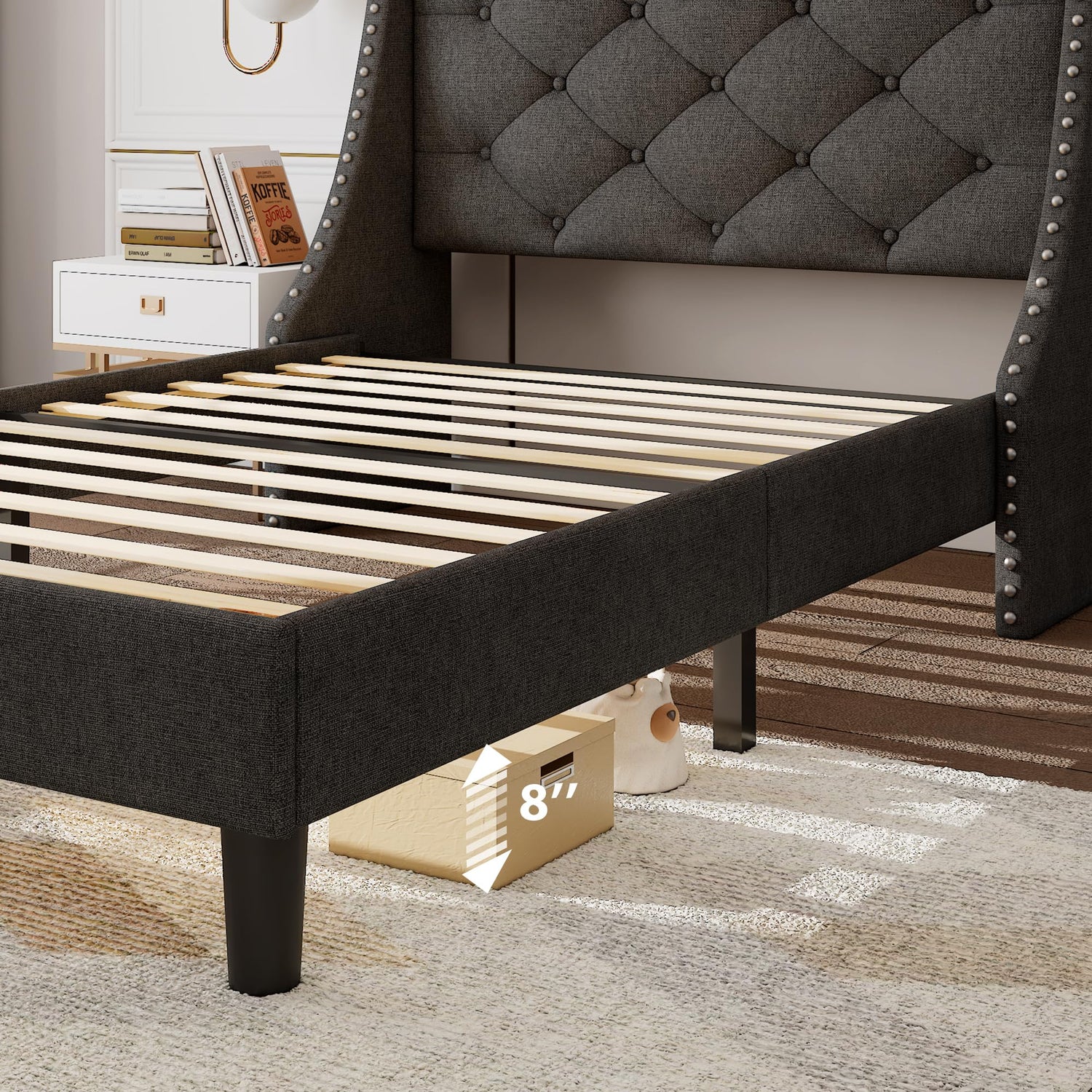 - Luxury & Comfortable: 16" wide huge wingback headboard designed with the innovative fashionable nailhead trim and button tufted design, will add sophisticated and fashionable style to any bedroom. Wrapped with high rebound memory sponge, is soft and breathable, providing a cozy backrest experience
