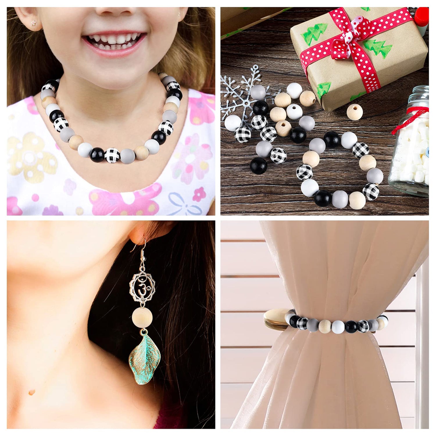 - Quantity: 250pcs farmhouse wood spacer beads of different colors, 5 colors of the natural, black white plaid, gray, white, and black, each color has 50pcs. Rich colors, sufficient quantity, elegant and versatile, to meet your needs in various scenarios