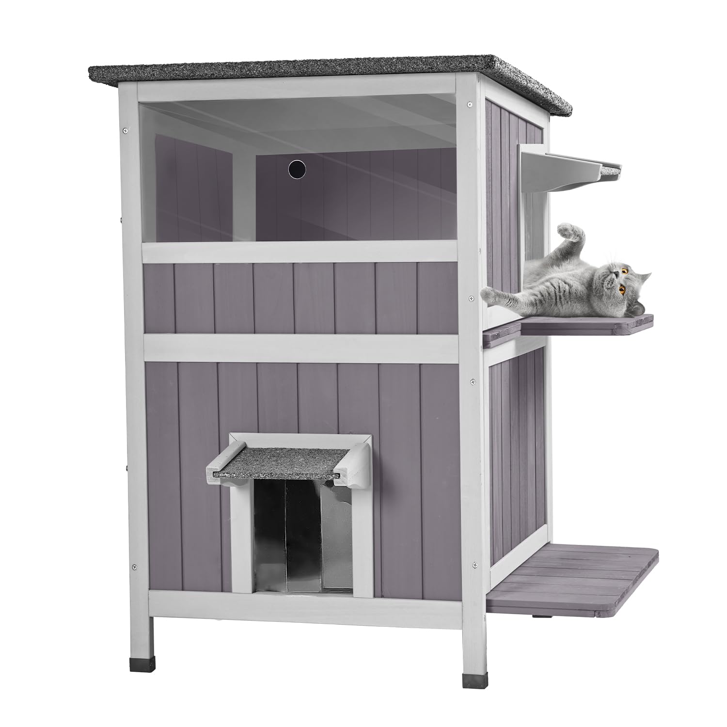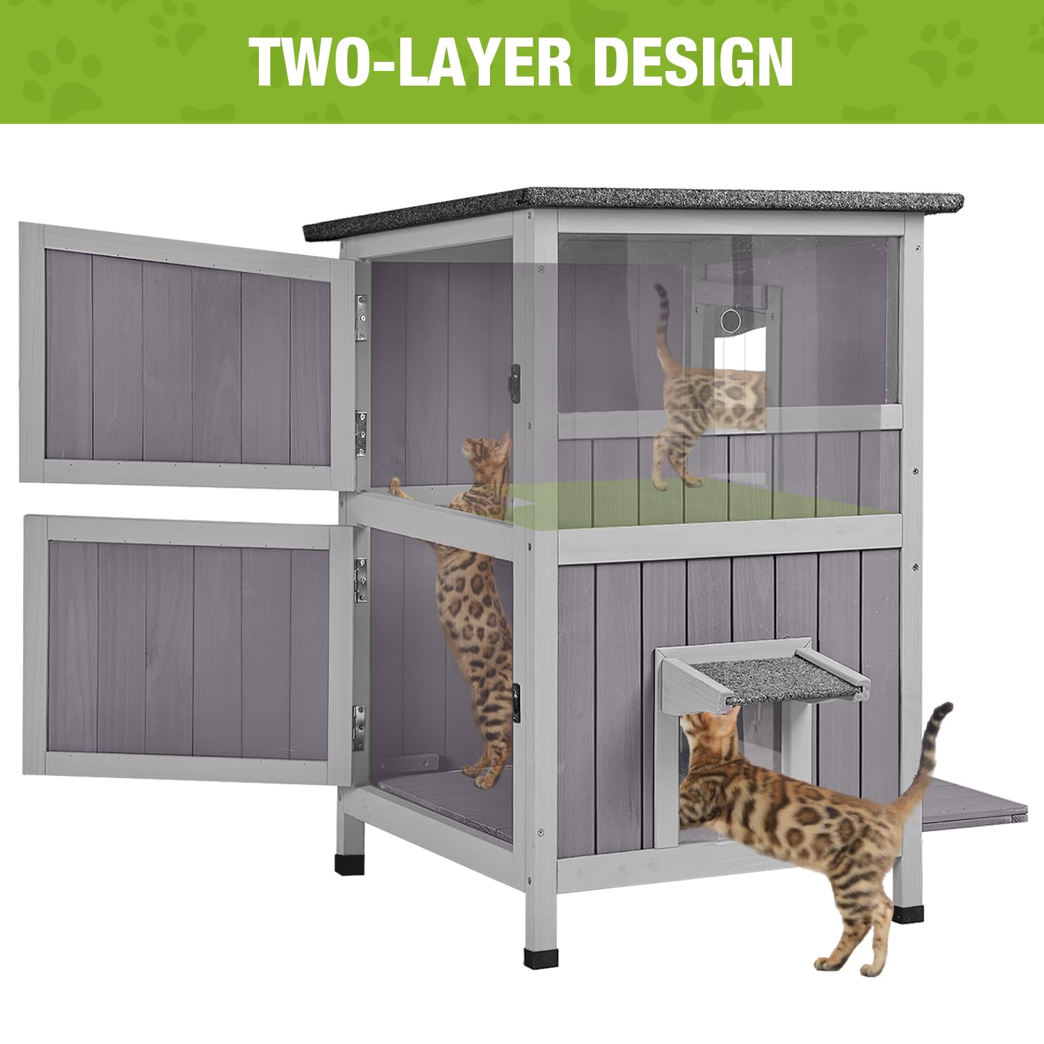 Feral Cat House Outdoor Waterproof Kitty Shelter for Winter,Cat Cage Perfect for Outdoor and Inddor Use,2-Story…