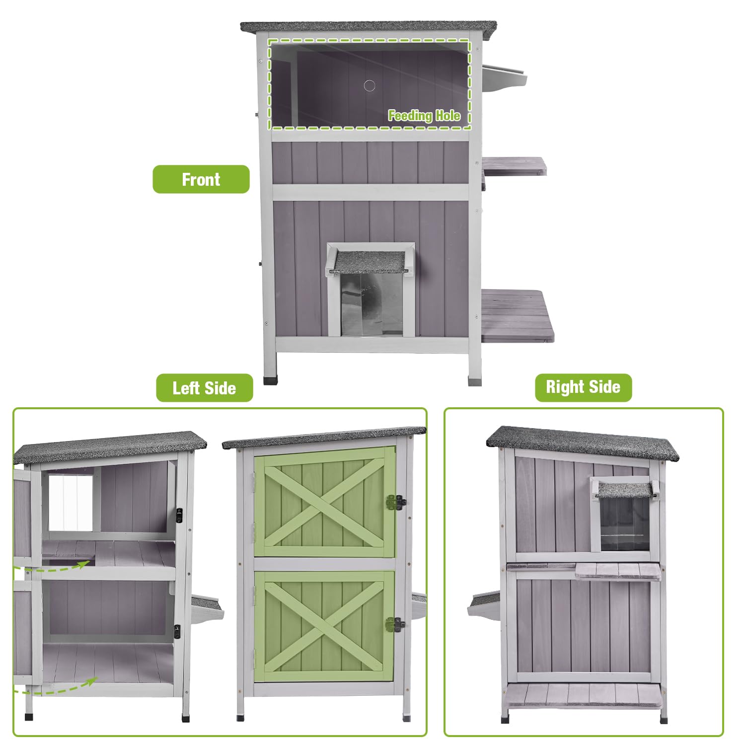 - 😺Upgrades cat shelter with pull out middle and bottom floor use thickened two-layer board have the greater bearing capacity for cats standing, not easy sliding out.
