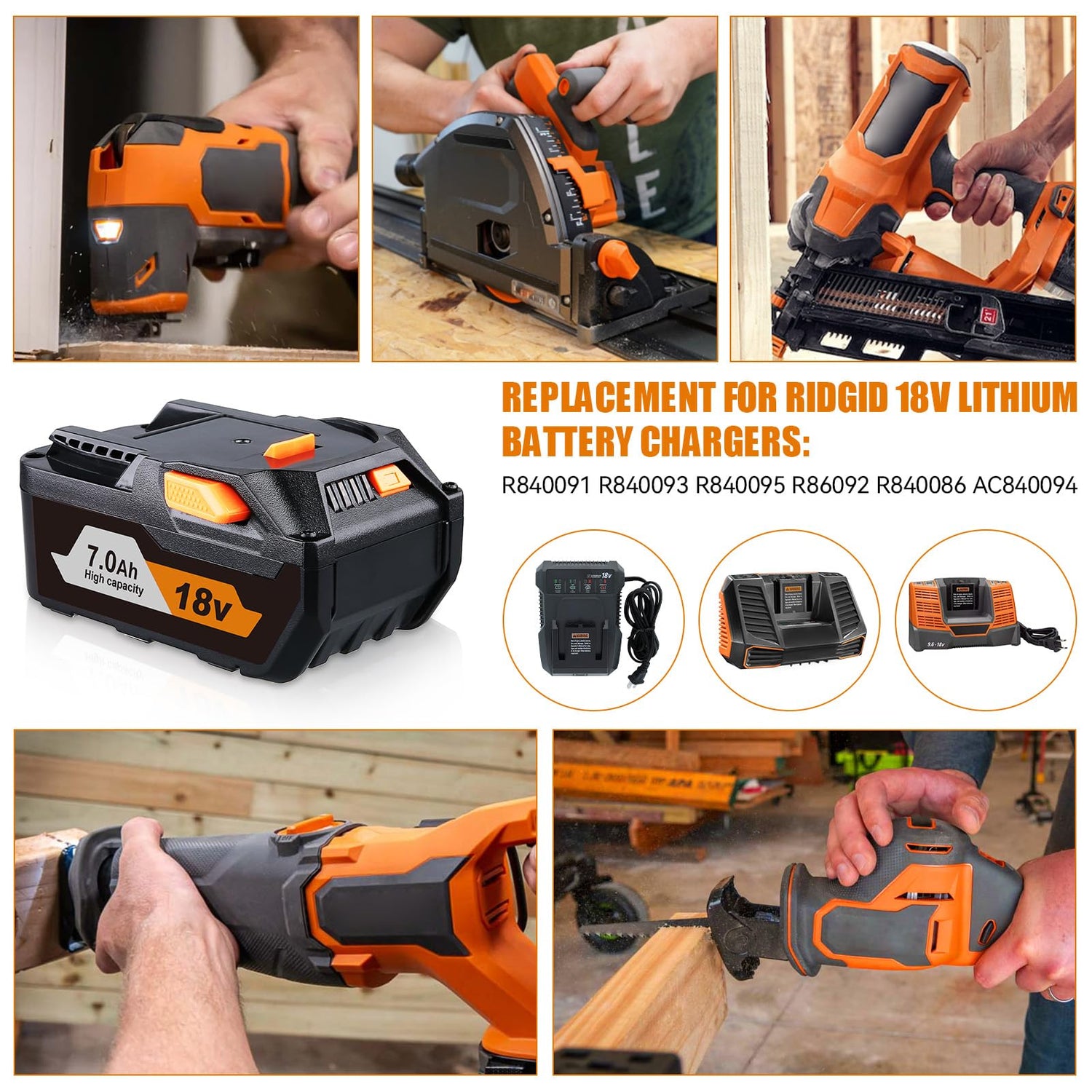 - BATTERY MODEL:Brand New | lithium ion | 18V |7000mAh | High quality, high capacity replacement for RIDGID R840087 | R840087 Lithium battery Replacement For RIDGID Battery 18V